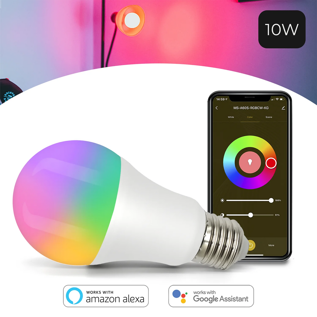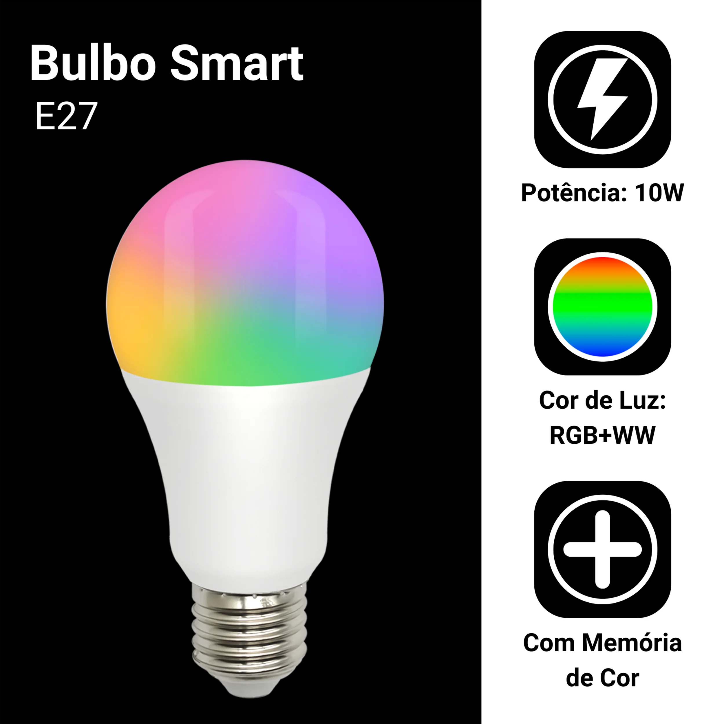 Com a Lâmpada Inteligente Tuya RGBW + WW, você pode personalizar as cores de iluminação de todos os ambientes da sua casa ou trabalho. Diversas cores estão disponíveis além da iluminação padrão: Branco Frio, Branco Neutro e Branco Quente.