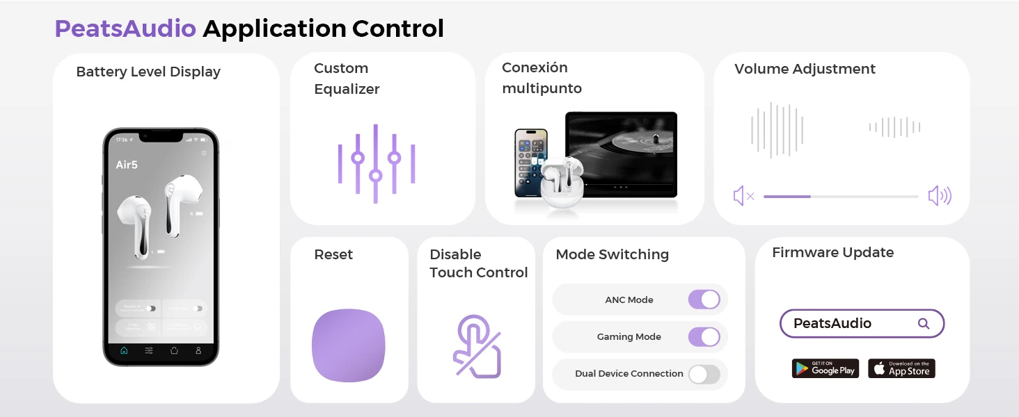 The default setting of the product is ear canal mode 2(medium), which fits most people. However, to avoid potential mismatches during the first use, which may cause abnormal sounds such as hissing or squealing when ANC is turned on, customers experiencing these issues can download the "PeatsAudio" app to select the ear canal model that best suits them. Alternatively, gently rotating the earbud to find the optimal angle can resolve these problems. (Please do not forcefully push the earbuds into your ears, as blocking the vent holes can lead to more squealing sounds.)
