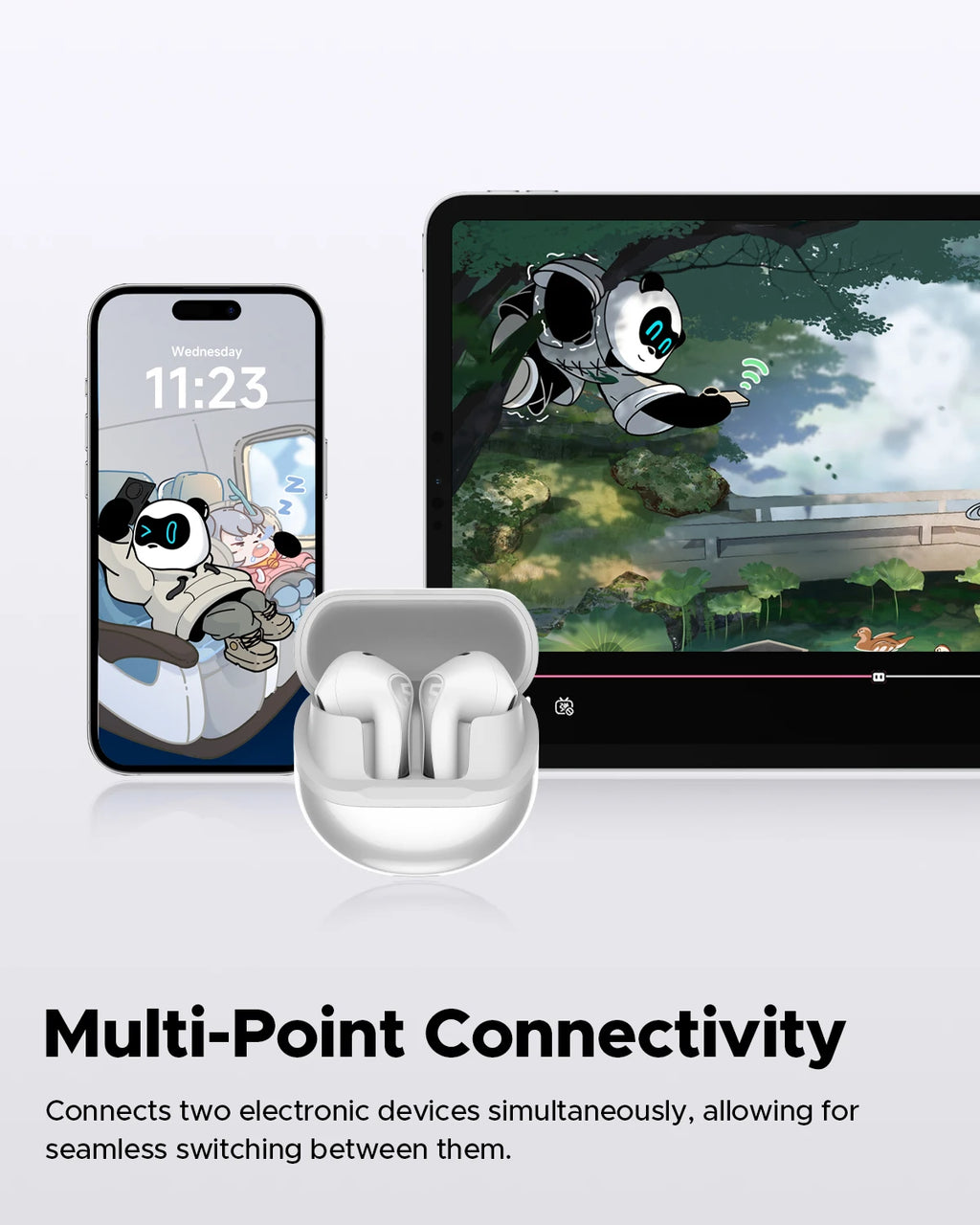 4. Once the earphones are re-connected with Device A, the multi-point connection function can work now.