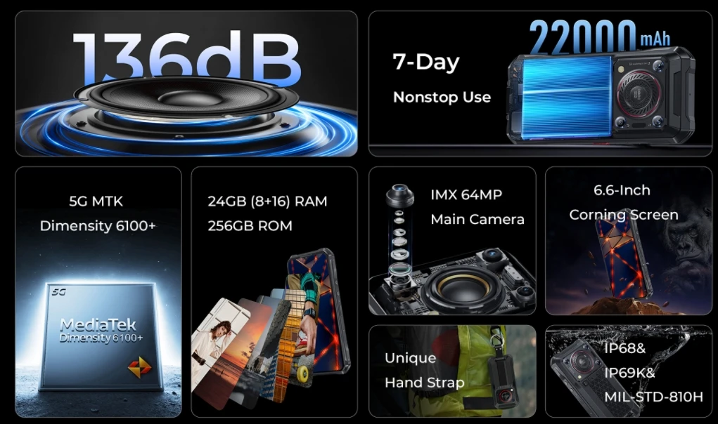 O Oukitel WP33 Pro é um smartphone robusto projetado para quem exige durabilidade e desempenho. Com 24GB de RAM (8+16GB) e 256GB de armazenamento, oferece multitarefa fluida e espaço generoso para seus arquivos. A bateria de 22000mAh garante autonomia estendida, enquanto a tela FHD+ de 6,6" proporciona imagens nítidas e vibrantes. A câmera de 64MP captura detalhes impressionantes, e o carregamento rápido de 33W reduz o tempo de espera. Conectividade 5G e NFC completam um conjunto versátil para profissionais e usuários exigentes.