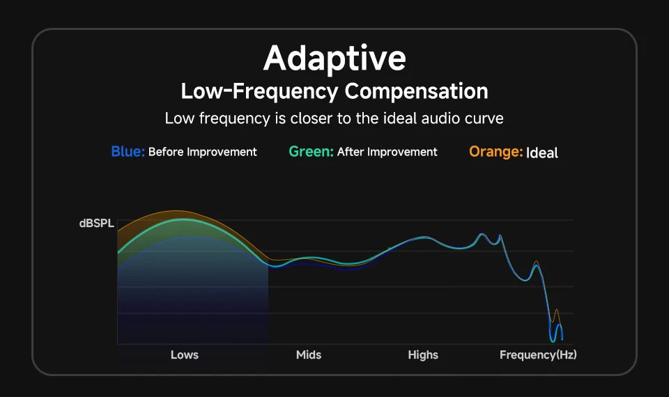 [AI Adaptive Audio]- HiFi 5 DSP tech delivers top-notch audio processing. The wireless earphones will automatically adapt to your ear canal and wearing status, With dynamically adjust low-frequency, allowing you to enjoy rich sound details.