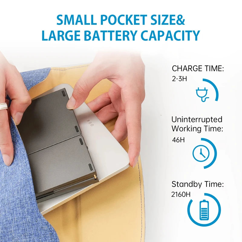 O teclado do tablet possui uma bateria de lítio recarregável de grande capacidade de 140mAh embutida, que tem um longo tempo de espera e é ecologicamente correta. Após 10 minutos sem trabalho, ele entrará no estado de suspensão inteligente, economizando energia e energia para você, e você poderá acordar pressionando qualquer tecla.