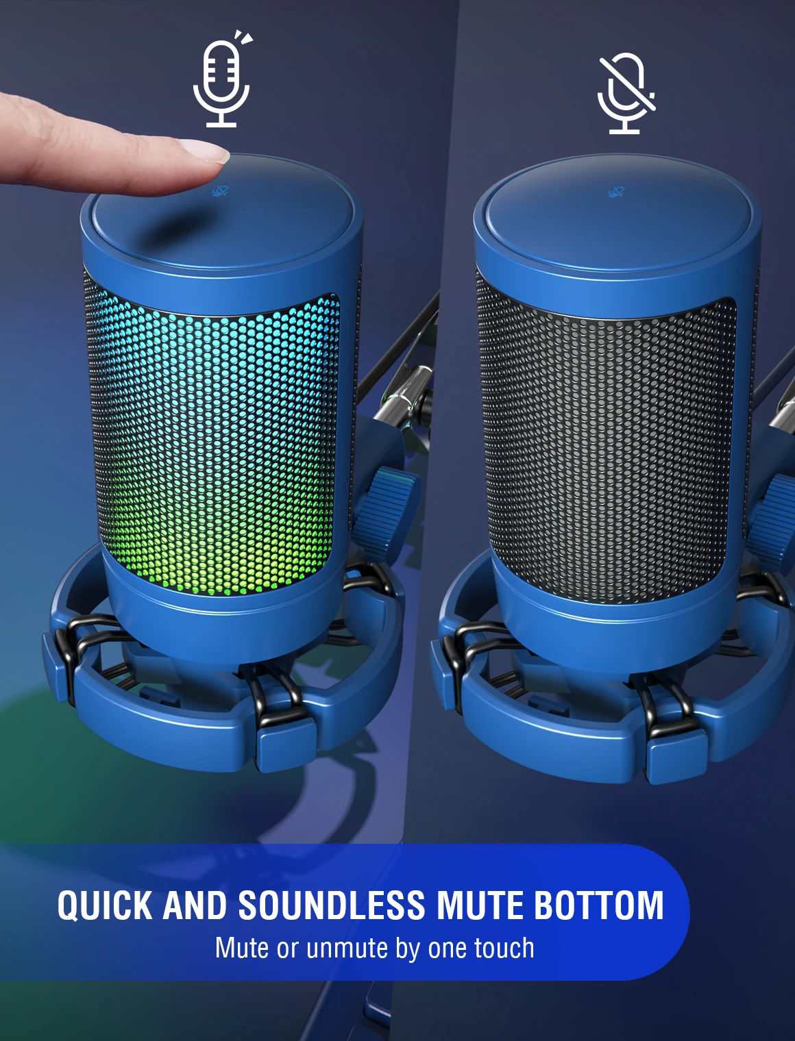 - One-Tap Mute Button – Instantly silence your mic to avoid accidental outbursts (RGB turns off when muted for clear visual feedback).