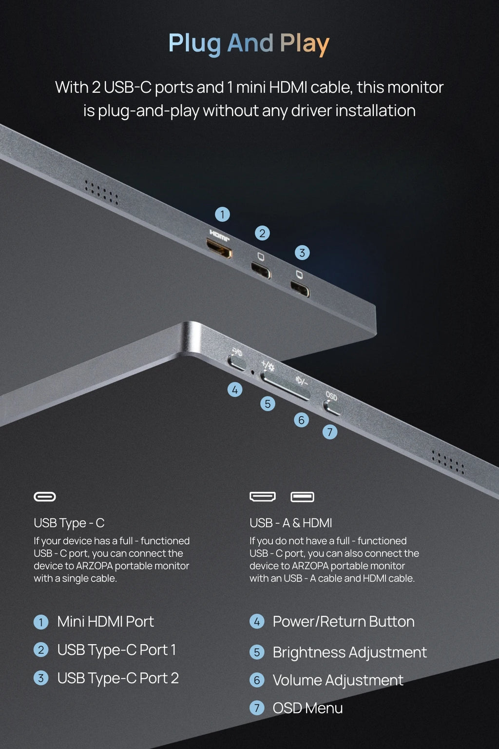 Monitor portátil Arzopa Z1FC de 16,1 polegadas com painel IPS 1920x1080 e taxa de atualização de 144Hz, ideal para profissionais e gamers em movimento. Oferece cobertura de cor 100% sRGB com brilho de 350 cd/m² e contraste 1200:1, garantindo precisão visual excepcional para edição de imagem, vídeo e design gráfico. Construído em liga de alumínio de luxo com acabamento premium, o monitor conta com conectividade versátil via USB-C e mini HDMI, permitindo compatibilidade com diversos dispositivos. Alto-falante integrado oferece áudio imersivo sem necessidade de equipamento adicional. Os ângulos de visão amplos de 178° garantem visualização consistente em qualquer posição, enquanto o tempo de resposta de 1ms e suporte a HDR10 proporcionam desempenho fluido para trabalho criativo, edição profissional e entretenimento de alta qualidade. A profundidade de cor de 8 bits e matriz IPS asseguram reprodução fiel de cores para fluxos de trabalho exigentes. Acompanha bolsa de armazenamento resistente para máxima portabilidade e proteção durante o transporte. Certificado CE, FCC, RoHS e WEEE, atendendo aos mais altos padrões internacionais de qualidade e segurança.