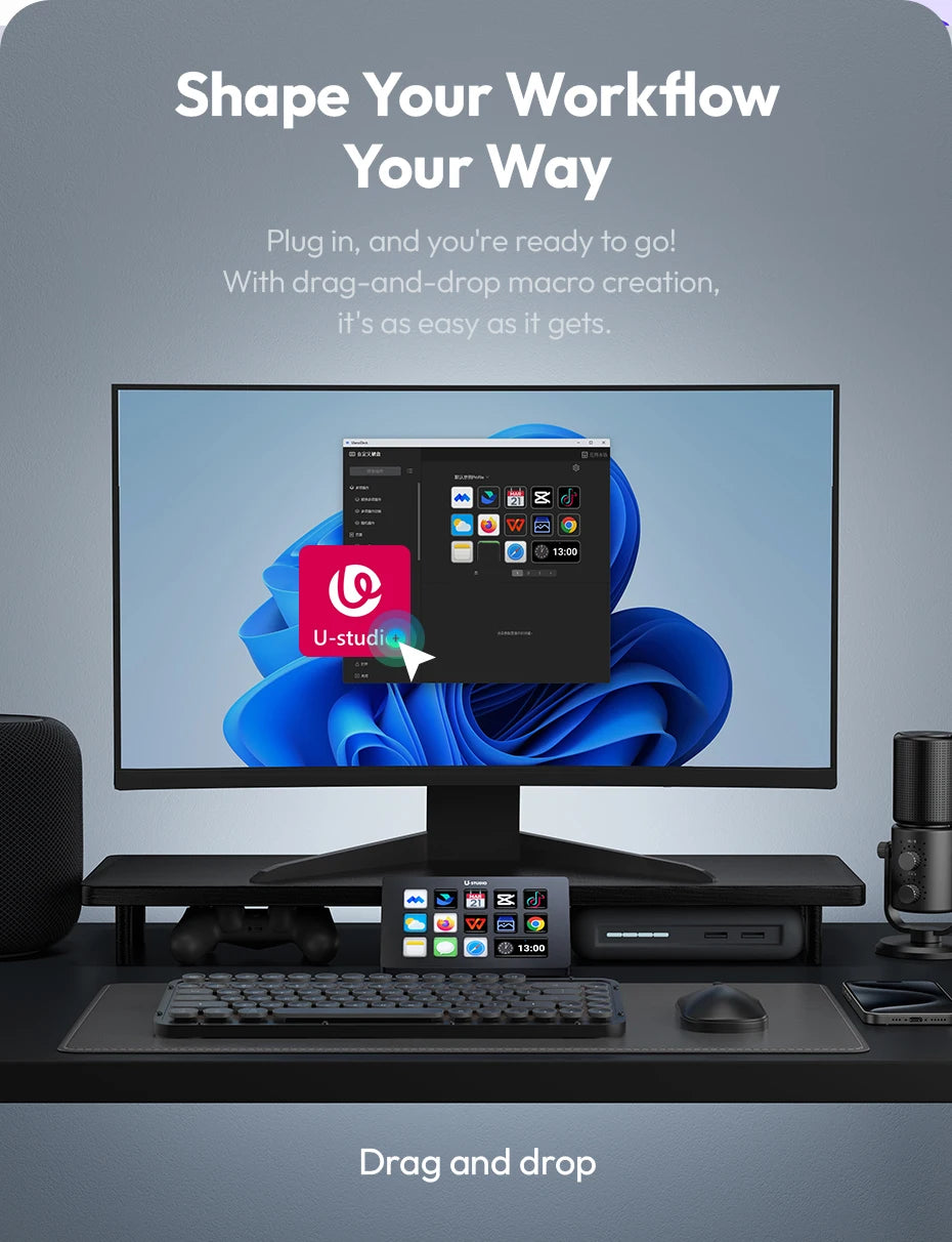 O Teclado Ulanzi D200 é um stream deck profissional com 13 teclas macro programáveis, ideal para criadores de conteúdo, gamers e profissionais de escritório. Compatível com YouTube, OBS e plataformas de transmissão ao vivo, permite automação completa de comandos com um único toque. Suporta cartões TF/SD e conexão USB 3.0 para transferência rápida de dados. Design compacto e responsivo, perfeito para otimizar seu fluxo de trabalho em estúdios, salas de jogos ou home office. Controle total sobre suas transmissões e produção de conteúdo com precisão e eficiência.