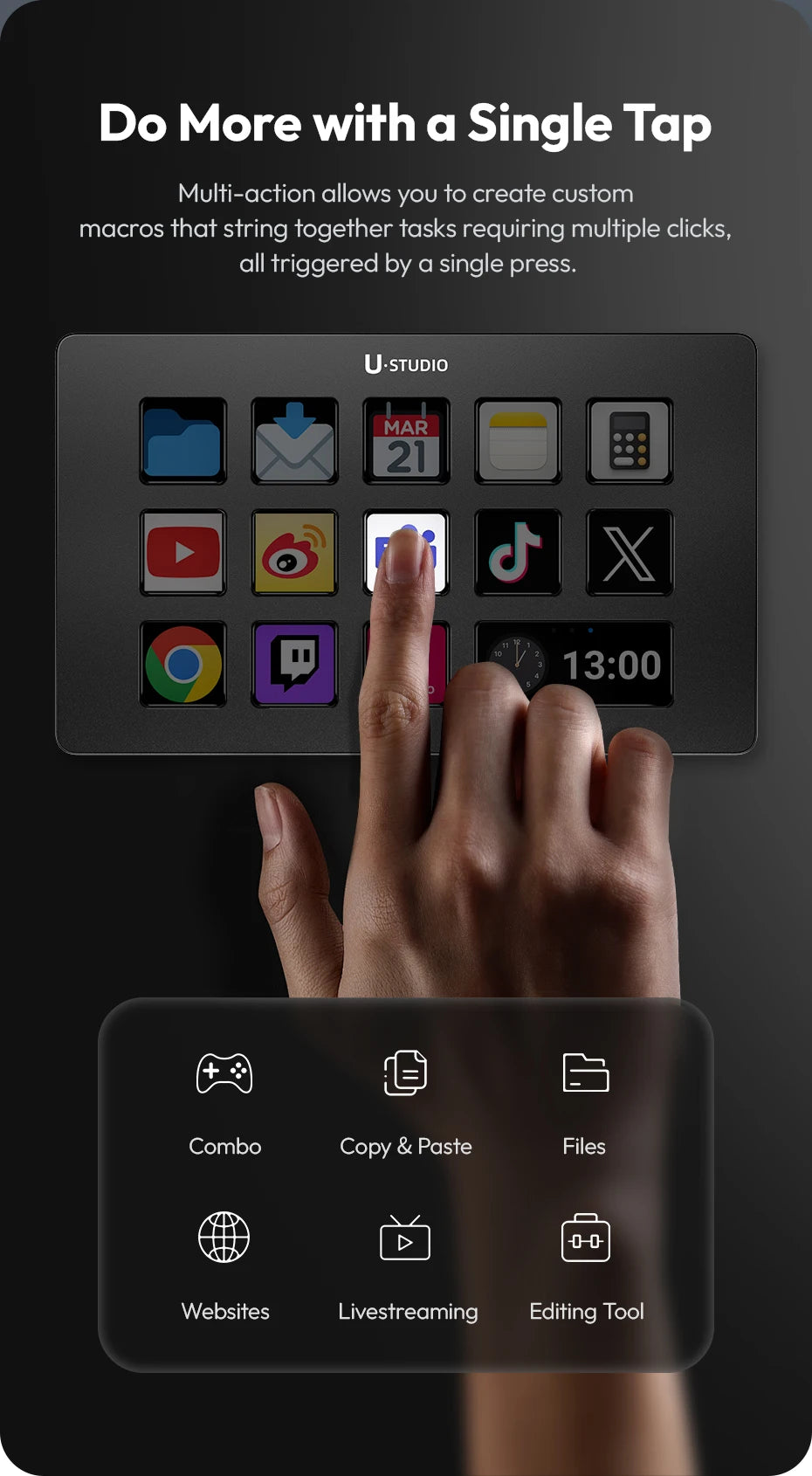Ulanzi D200 D200H Stream Deck Keyboard with 13 Macro Keys Stream Controler for Youtube Office Game Live Support TF/SD/USB 3.0