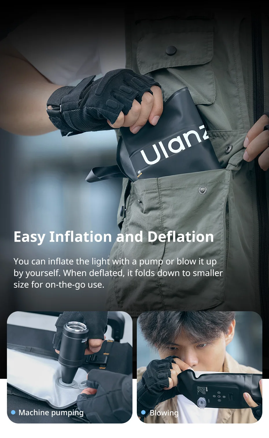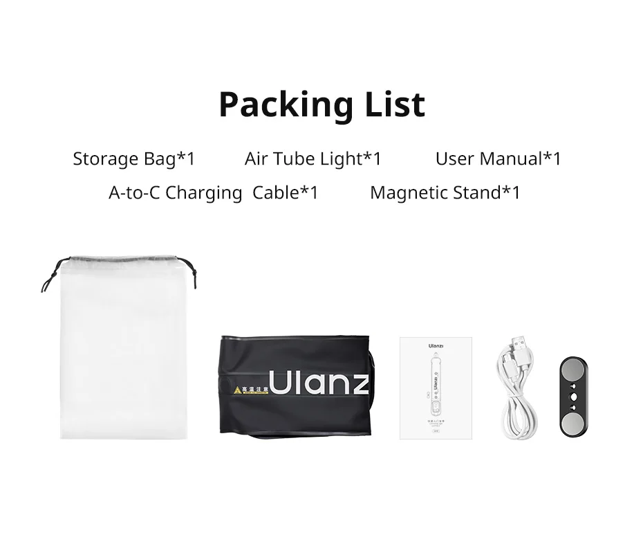 Ulanzi UA20 90cm Portable Air Tube Light 20W 2700K-6500K Bi-Color Inflatable Magnetic Fill Light for Livestreaming Photography
