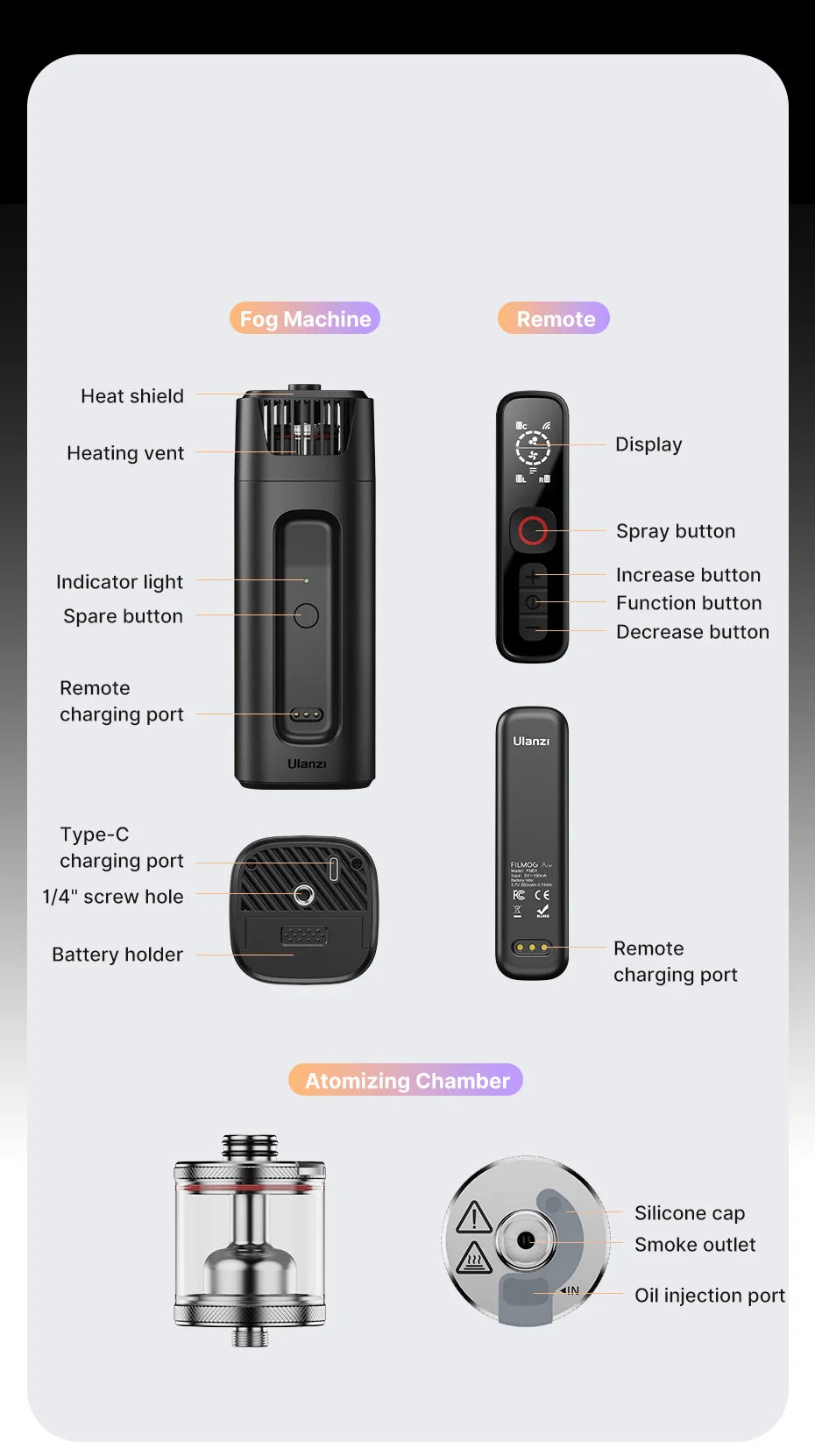 Ulanzi FM01 FILMOG Ace Portable Fog Machine 40W Wireless Control Smoke Machine Fog Effects for Photography Parties Stage Effects