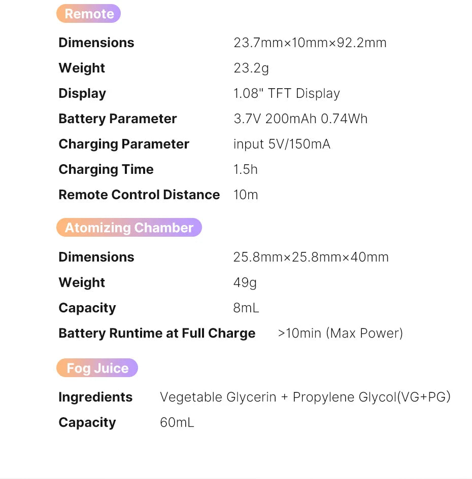 4.Remote Control: Enjoy the convenience of shaping the smoke from a distance up to 10 meters.