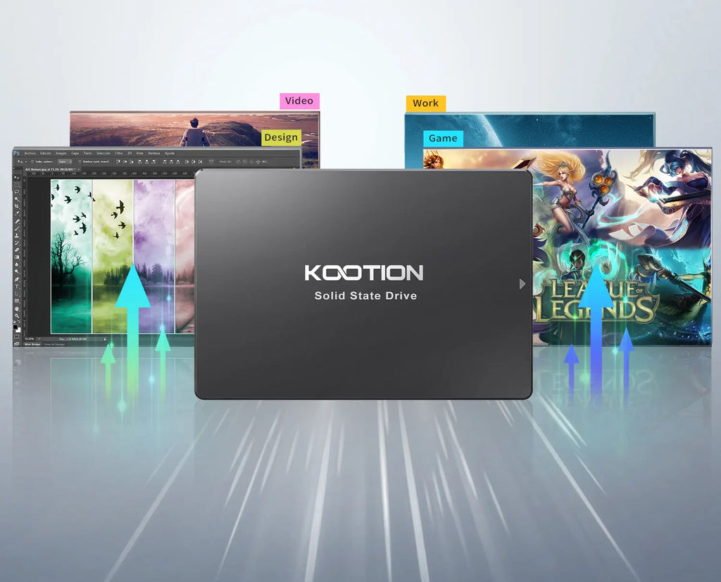 Acelere com a tecnologia KOOTION 3D NAND para iniciar, carregar aplicativos e jogos e transferir arquivos em alta velocidade.