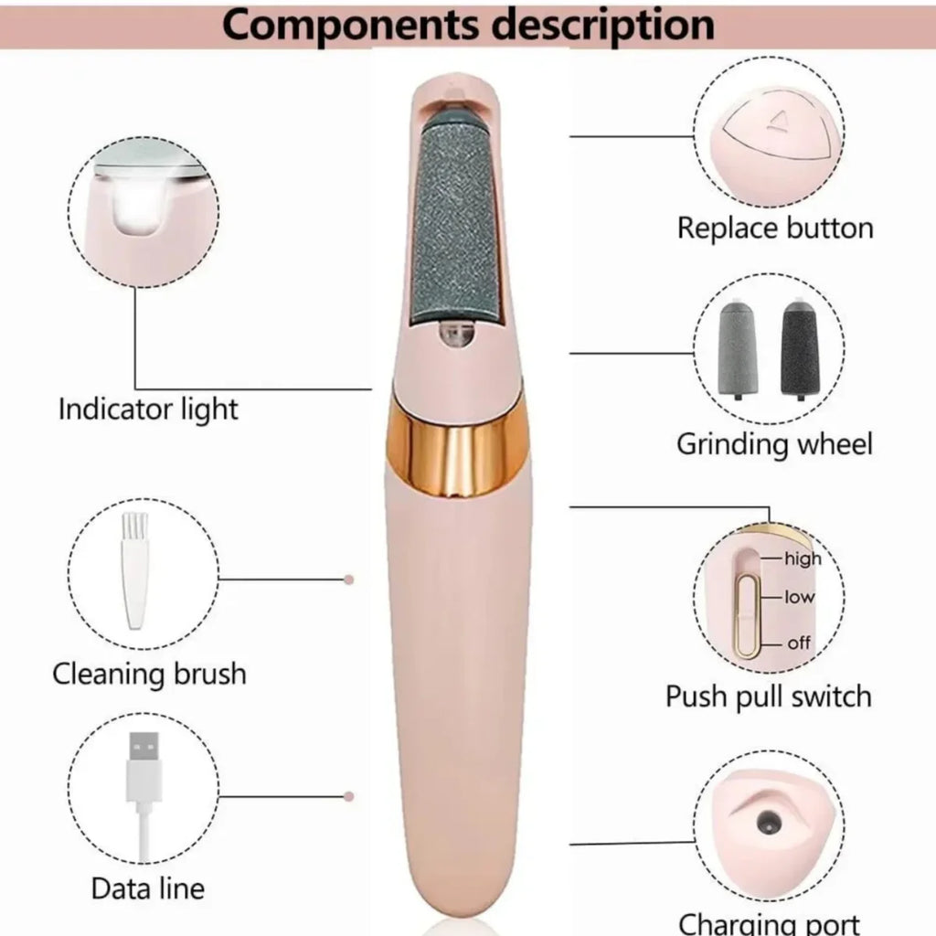 A lixa elétrica para pés rosa é uma ferramenta profissional recarregável, projetada para remover calosidades e suavizar a pele com eficiência. Seu sistema eletrônico promove um lixamento delicado e uniforme, contribuindo para a cicatrização e renovação da pele dos pés. Ideal para cuidados regulares, oferece uma solução prática e segura para manter os pés macios e saudáveis.