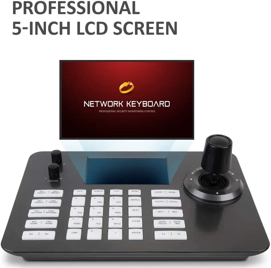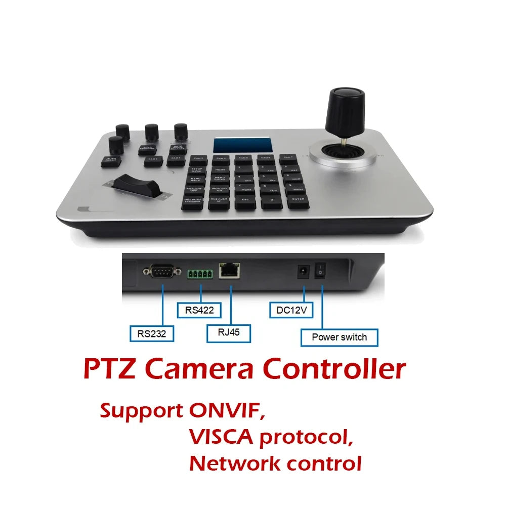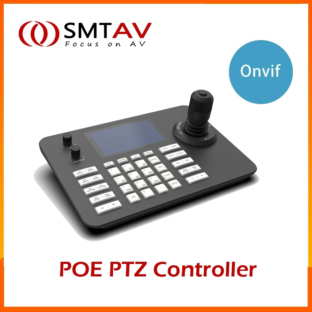 Controlador PTZ de rede profissional com joystick 4D para gerenciamento avançado de câmeras IP, desenvolvido pela marca SMTAV com certificação CE. Compatível com protocolo ONVIF e suporta alimentação PoE, eliminando a necessidade de fontes externas dedicadas. Processa vídeo em Full HD (1080P) a 30fps com decodificação H.265 e H.264, garantindo compatibilidade com múltiplos formatos de compressão. Sistema baseado em Linux com processador HIS3536DV100 e capacidade de controlar até 999 equipamentos simultaneamente, oferecendo escalabilidade para grandes instalações. Inclui teclado IP integrado, saídas RS422 e RS232 para integração com sistemas legados, e botões rotativos para controle intuitivo e preciso. O joystick 4D proporciona movimentos suaves em pan, tilt, zoom e foco. Adaptador de alimentação incluído. Ideal para instalações de vigilância corporativa, centros de monitoramento e segurança profissional de alta performance que exigem confiabilidade e controle centralizado.