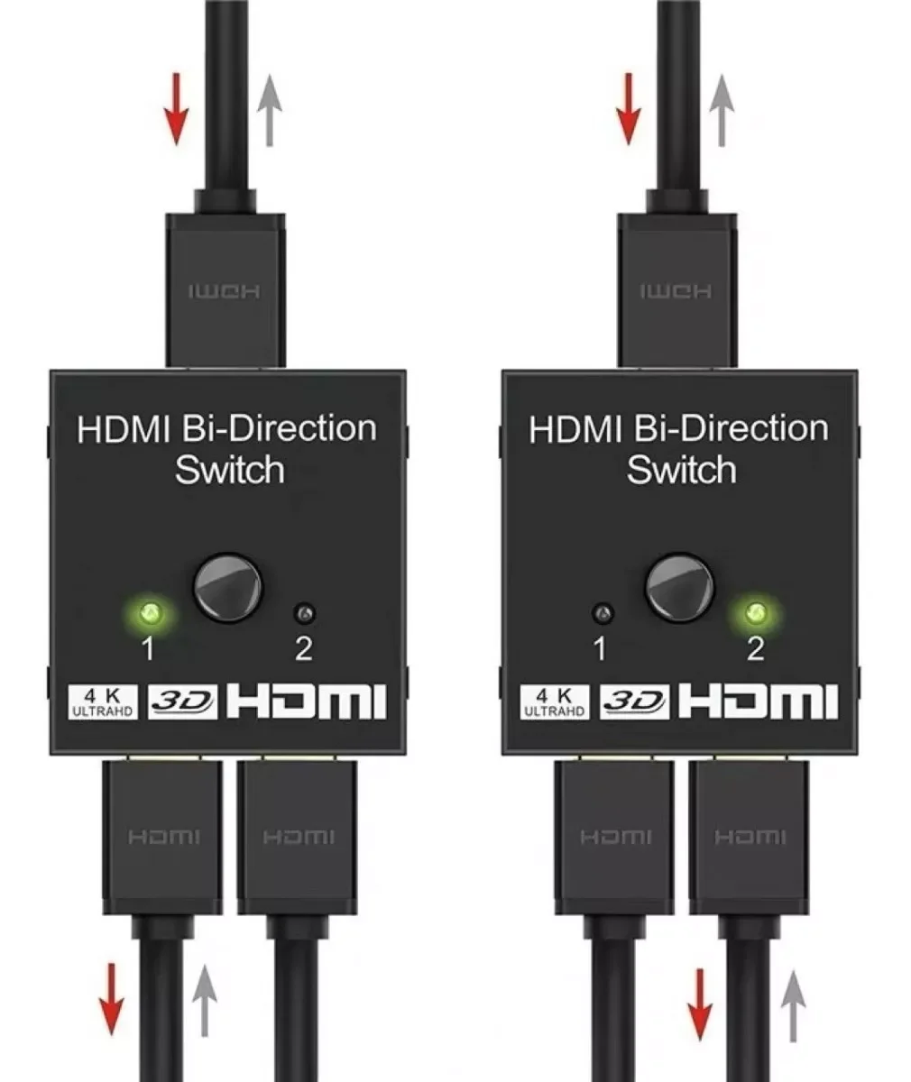 3. Bi-Directional Function: HDMI bidirectional Splitter Helps Connect 2 HDMI sources to 1 HDMI display, or connect 1 HDMI source to switch between 2 monitors (2 screens can't display simultaneously)