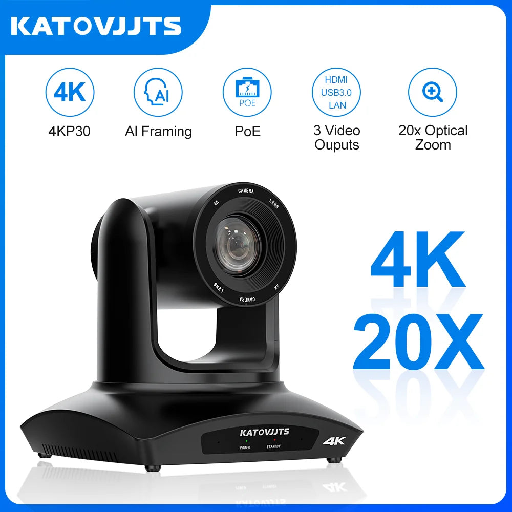 4K 20X PTZ Camera USB3.0 HDMI LAN POE Conference Camera For Church Live Streaming AI Framing Outdoor Video Camera