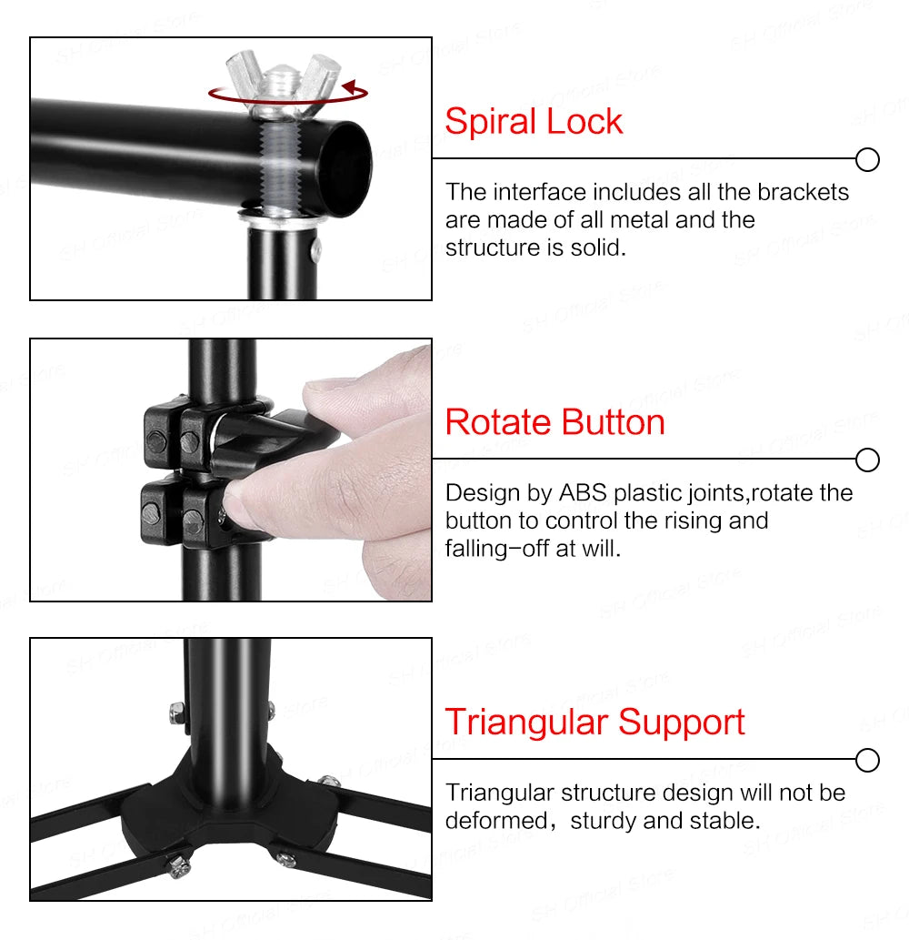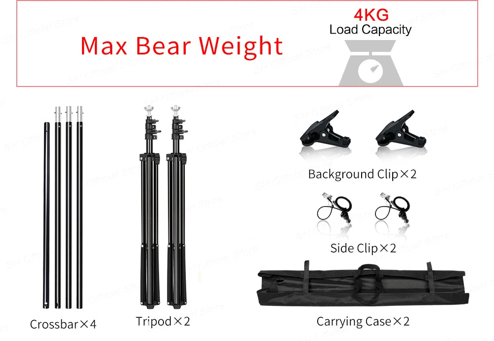 4xClamps:2x Side clip,adjust the background cloth to the best position.2x Strong clip,Fixed items prevent it slip-out.