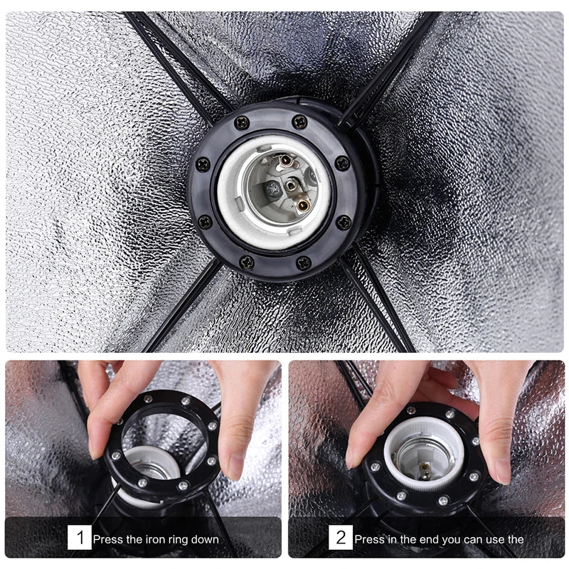 The black/silver umbrella can maximizing light spread and reflects more light.