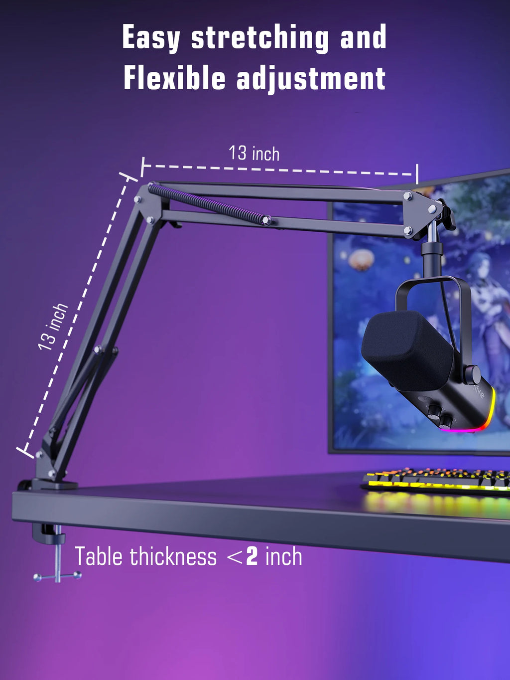 This sleek articulated arm microphone set offers ultimate flexibility with adjustable angles and height, ensuring stable recording without desk vibrations. Keep your workspace organized effortlessly!