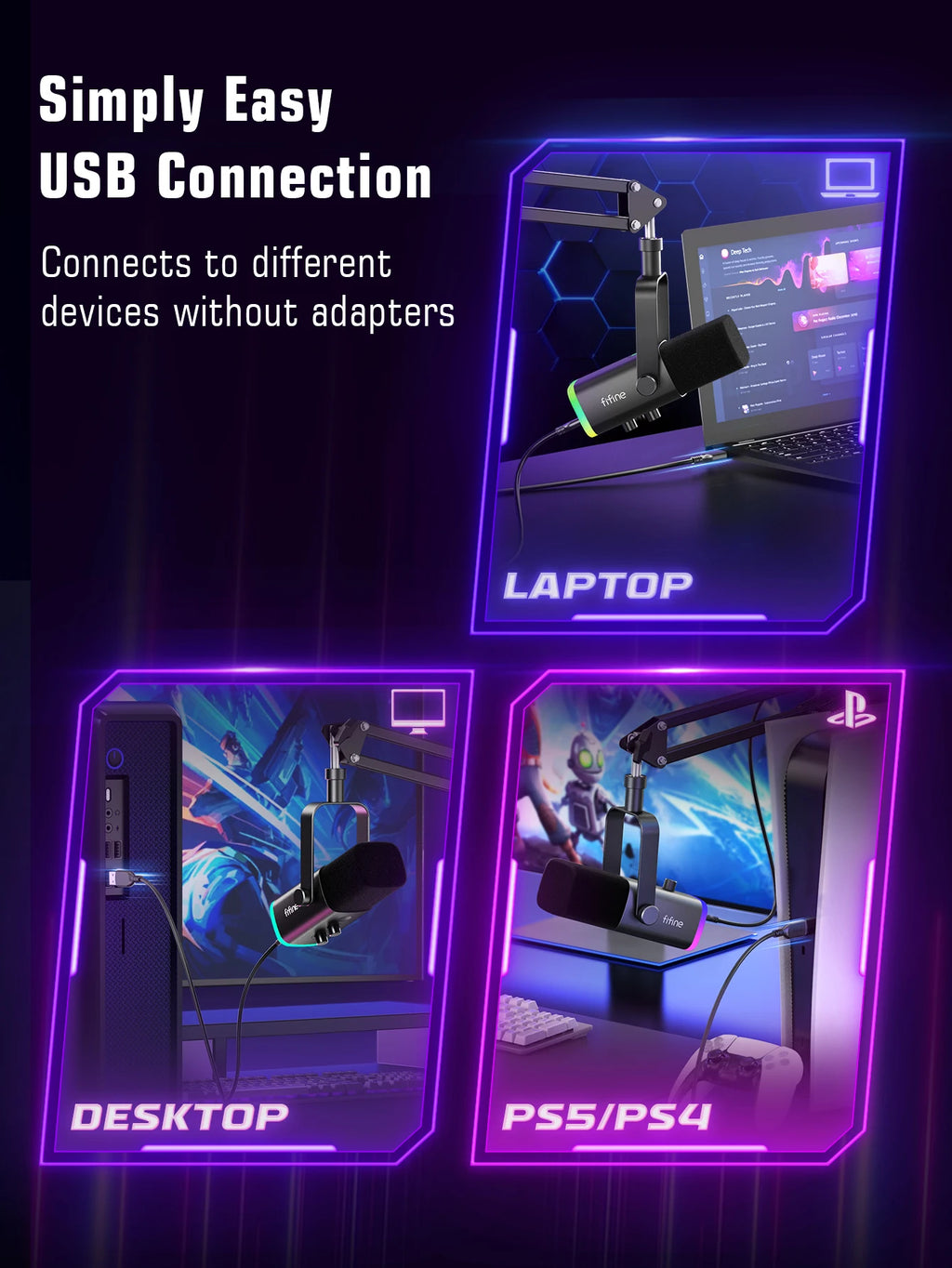 Equipped with XLR and USB interfaces, this versatile microphone kit effortlessly connects to a variety of devices, from professional audio equipment to PC, PS4/5. Just plug in and start creating without any hassle! Note: XLR cables are not included