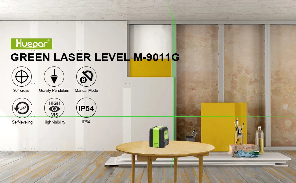 NEW GREEN DIODE TECHNOLOGY: We adopt Osram's laser unit which is the best green laser unit in the world at present; Green laser is 2 times (300%) brighter than red laser with the same light source. When in the cloudy and light intensity is 14000lux environment, the Huepar 9011G's visibility is 40ft.