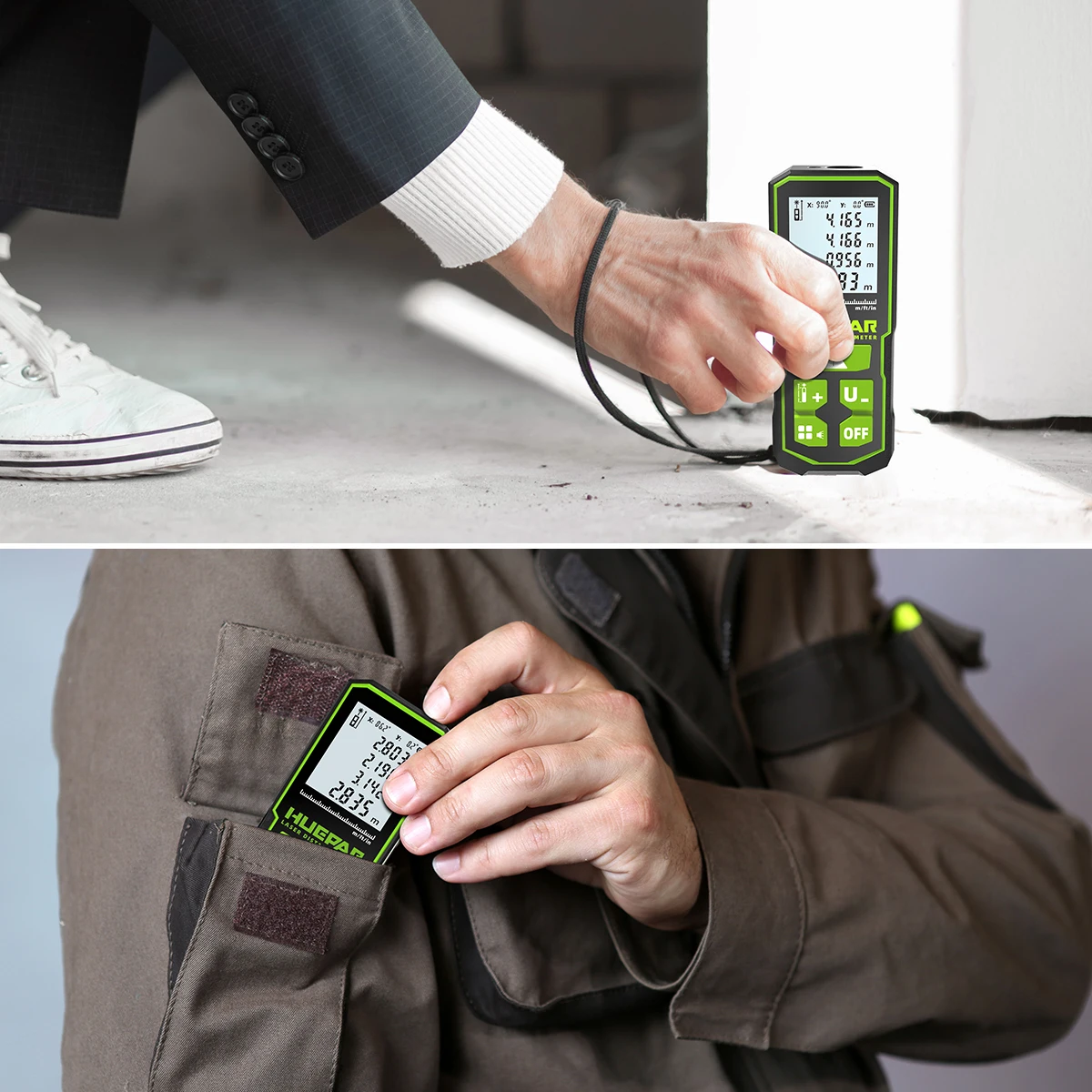 Huepar Digital Green Laser Distance Meter 60M 100M 120M Laser Tape Measure Rangefinder With LCD Angle Sensor Measuring Tools