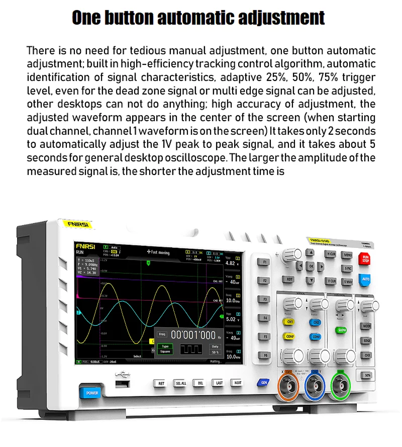 Equipped with high efficiency One-button AUTO, and one-button waveform storage and screenshot function.