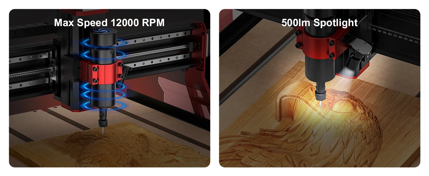 • Expandable Tool System: Comes with 500W spindle, supports upgrade to Two Trees TC20 laser module, compatible with 65/69mm spindle mounts.