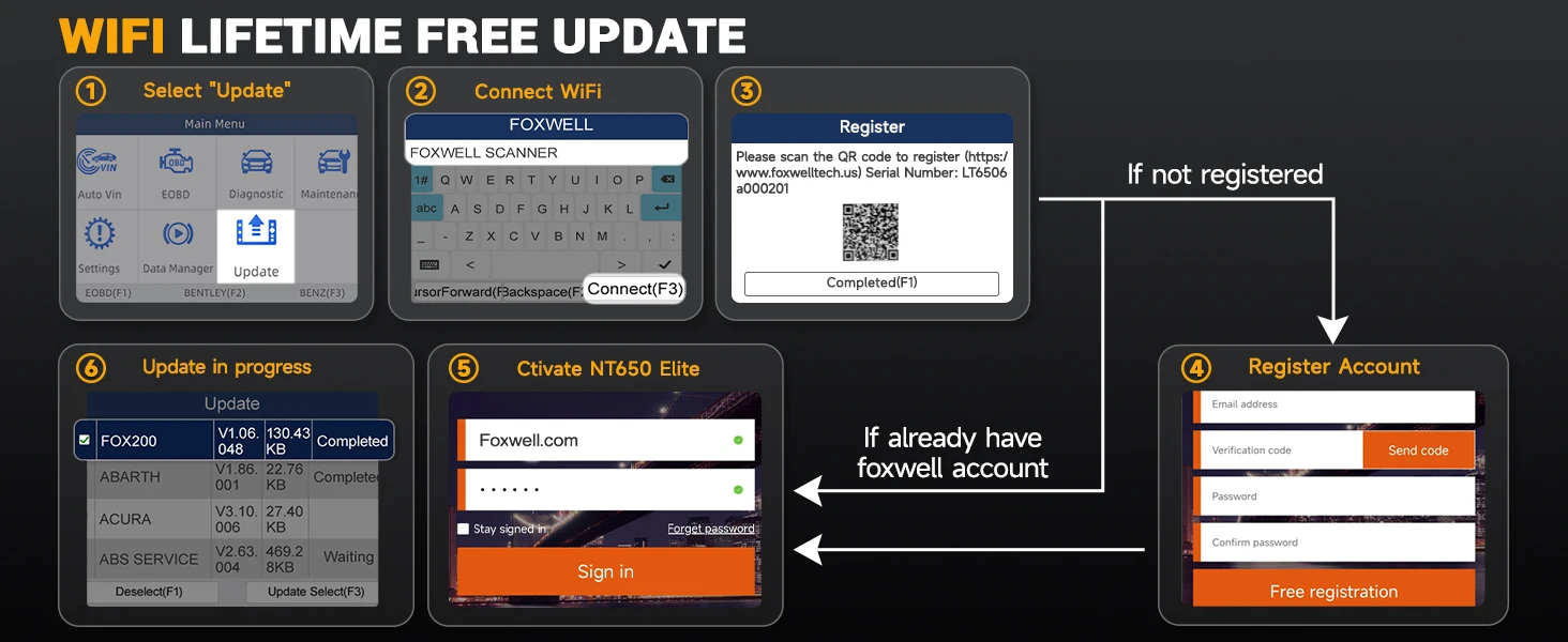 Foxwell NT650 Elite Support Lifetime free update via WiFi