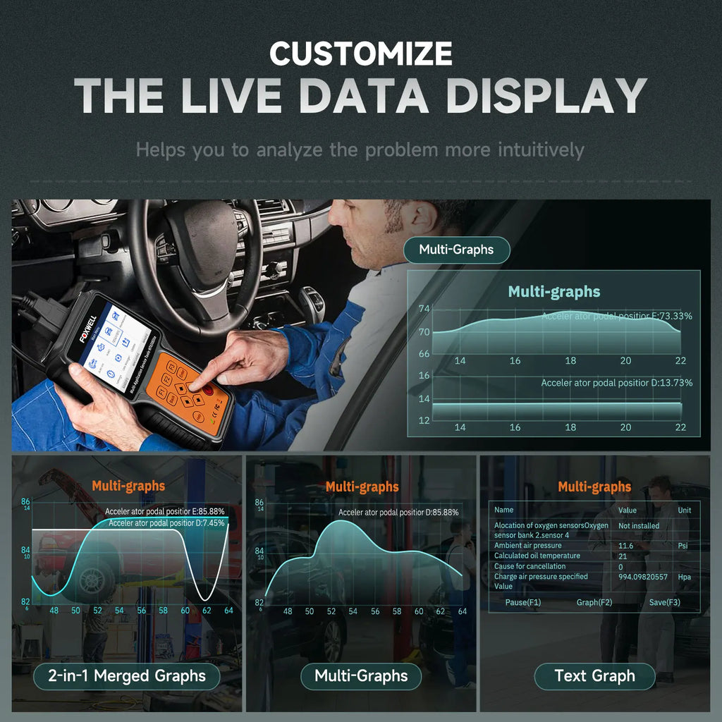 You can customize the data graphs as you need, select different parameters (max 2) to create a 2-in-1 live data graph. Helps you more accurately analyze the vehicle health situation.