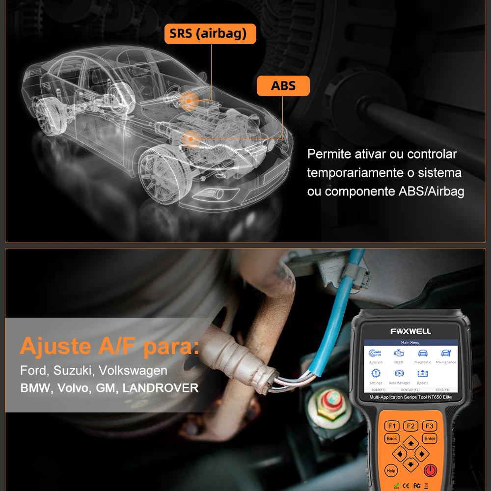 O Scanner automotivo OBD2 FOXWELL NT650 Elite representa o padrão ouro em diagnóstico veicular profissional. Equipado com mais de 26 funções especializadas, executa resets críticos de SAS (sensor de ângulo de direção), A/F (relação ar-combustível), óleo, EPB (freio de estacionamento eletrônico), BRT (bateria) e TPS (sensor de posição do acelerador) sem custos operacionais. Certificado CE e com suporte a 13 idiomas, incluindo português, adapta-se perfeitamente ao mercado brasileiro. O hardware de última geração garante leituras precisas de códigos de falha em veículos multimarcas, enquanto a interface intuitiva reduz o tempo de diagnóstico. Atualizações gratuitas vitalícias mantêm a ferramenta sempre compatível com novos modelos. Investimento essencial para oficinas que demandam confiabilidade, eficiência e versatilidade no atendimento automotivo.