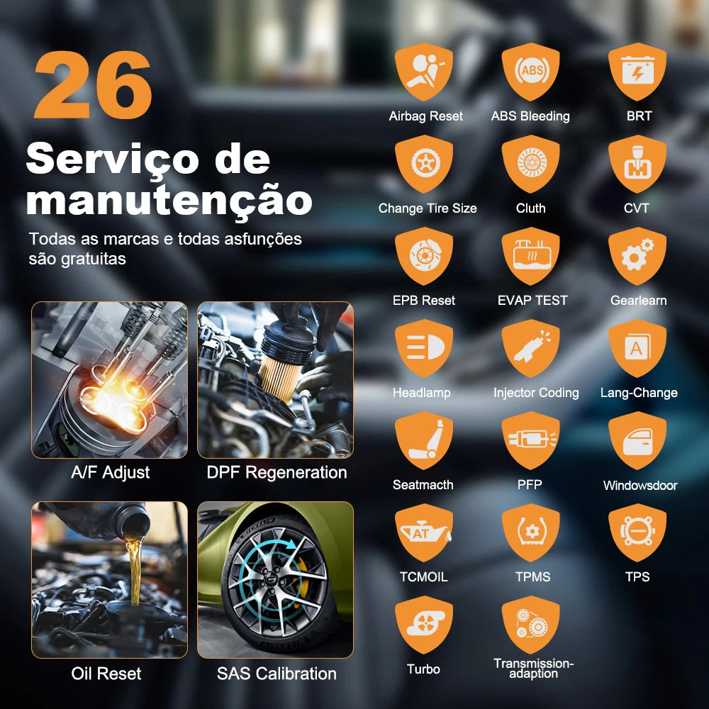 🔥Special Functions: comes with 26 maintenance services, such as ABS bleeding, Oil light reset, EPB reset, SAS reset, battery registration, Bi-directional test only on abs and srs system, TPMS, throttle, injector, A/F adjust and etc.