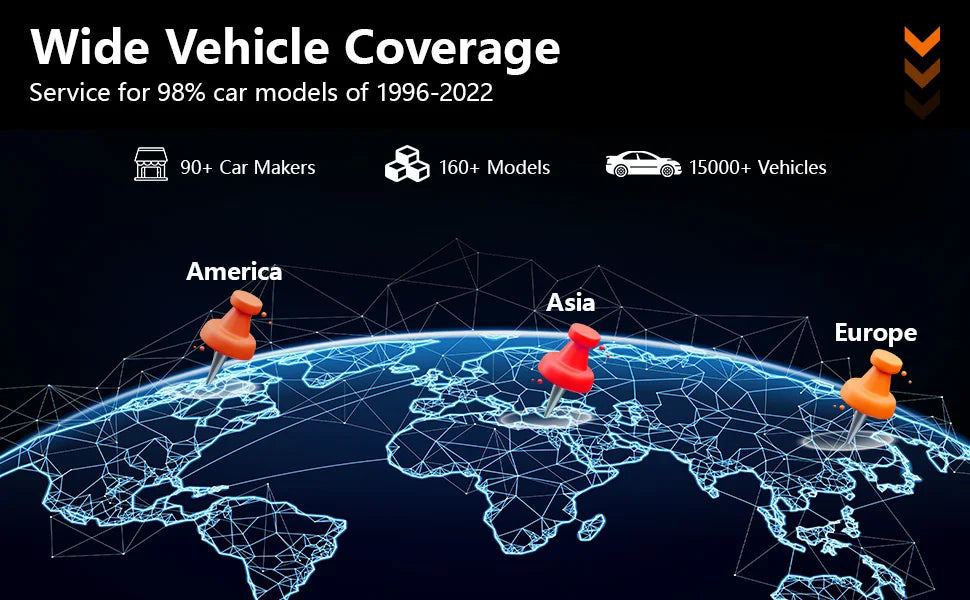 🔥Wide Coverage of 110+ Car Brands: covers 10,000+ vehicle models in the American, European, and Asian cars market, works on the latest 2023/2024 models including cars, SUVs, minivans, and light-duty trucks sold worldwide. easy to get the newest diagnostic software version via each time free update, without an additional update fee.
