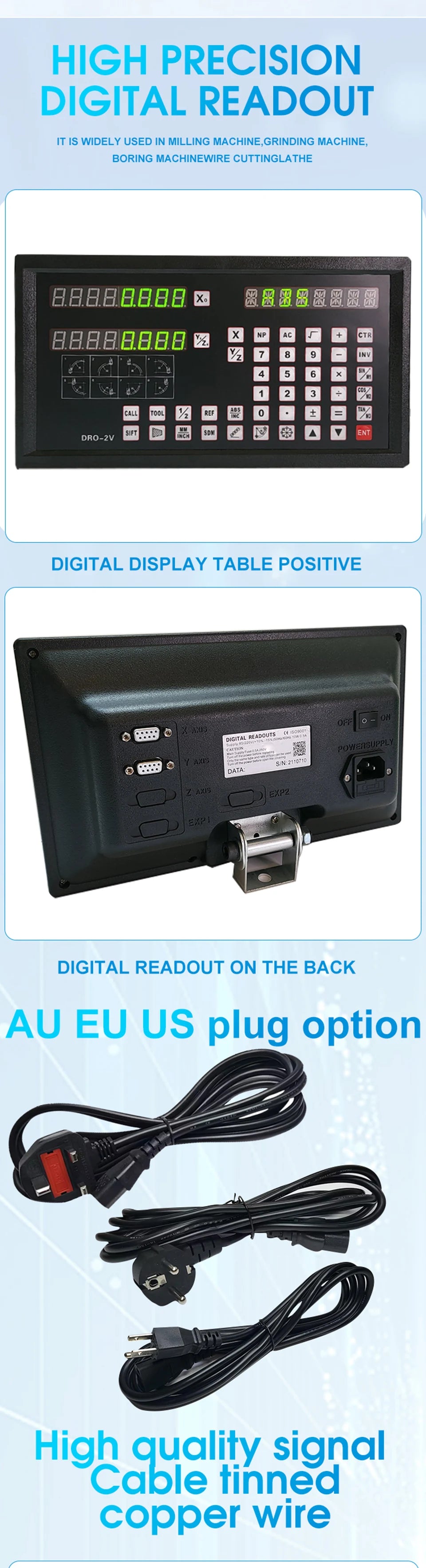 The digital readout(DRO) is a high precision instrument that can be used on lathe,grinding machine,milling machine,boring machine,EDM etc.