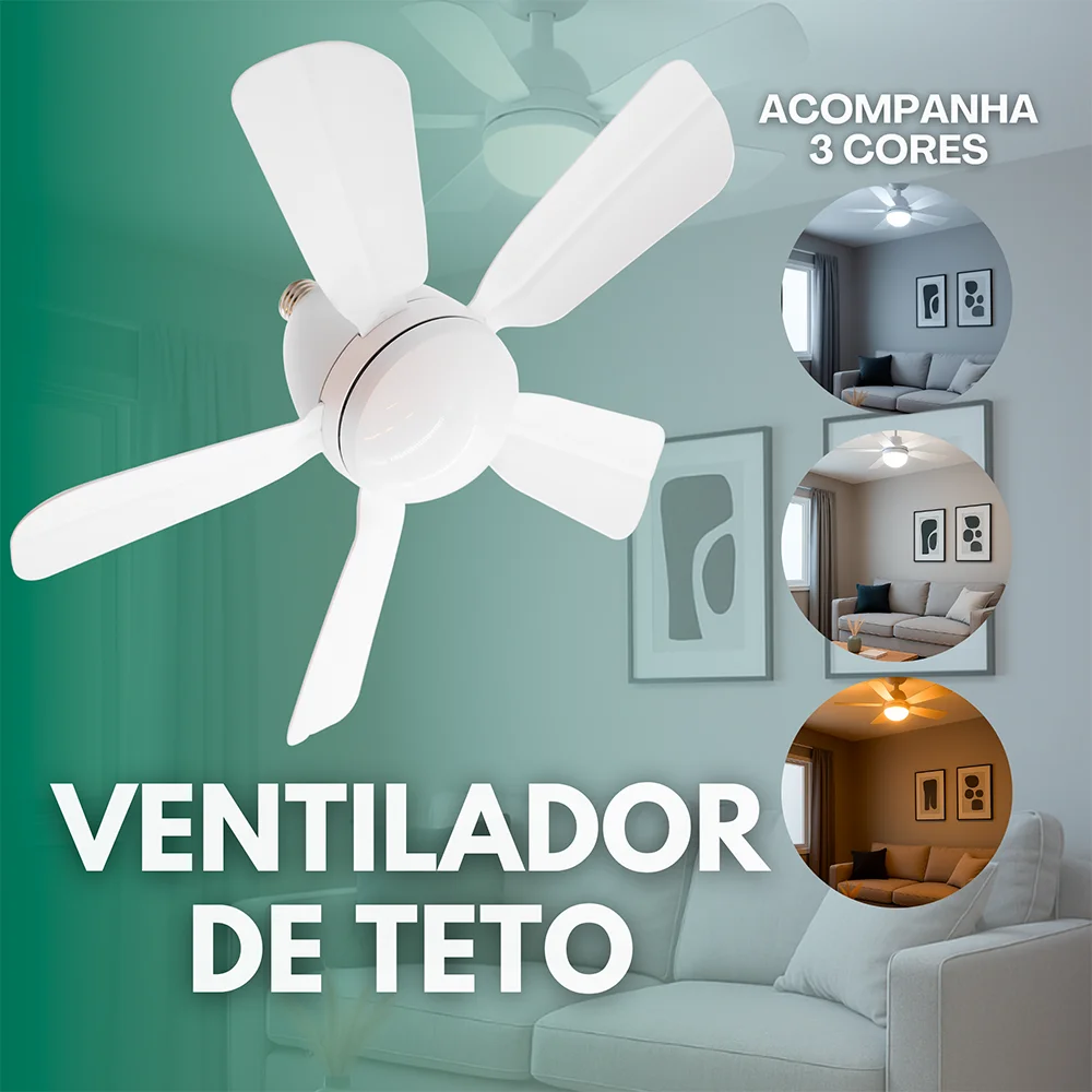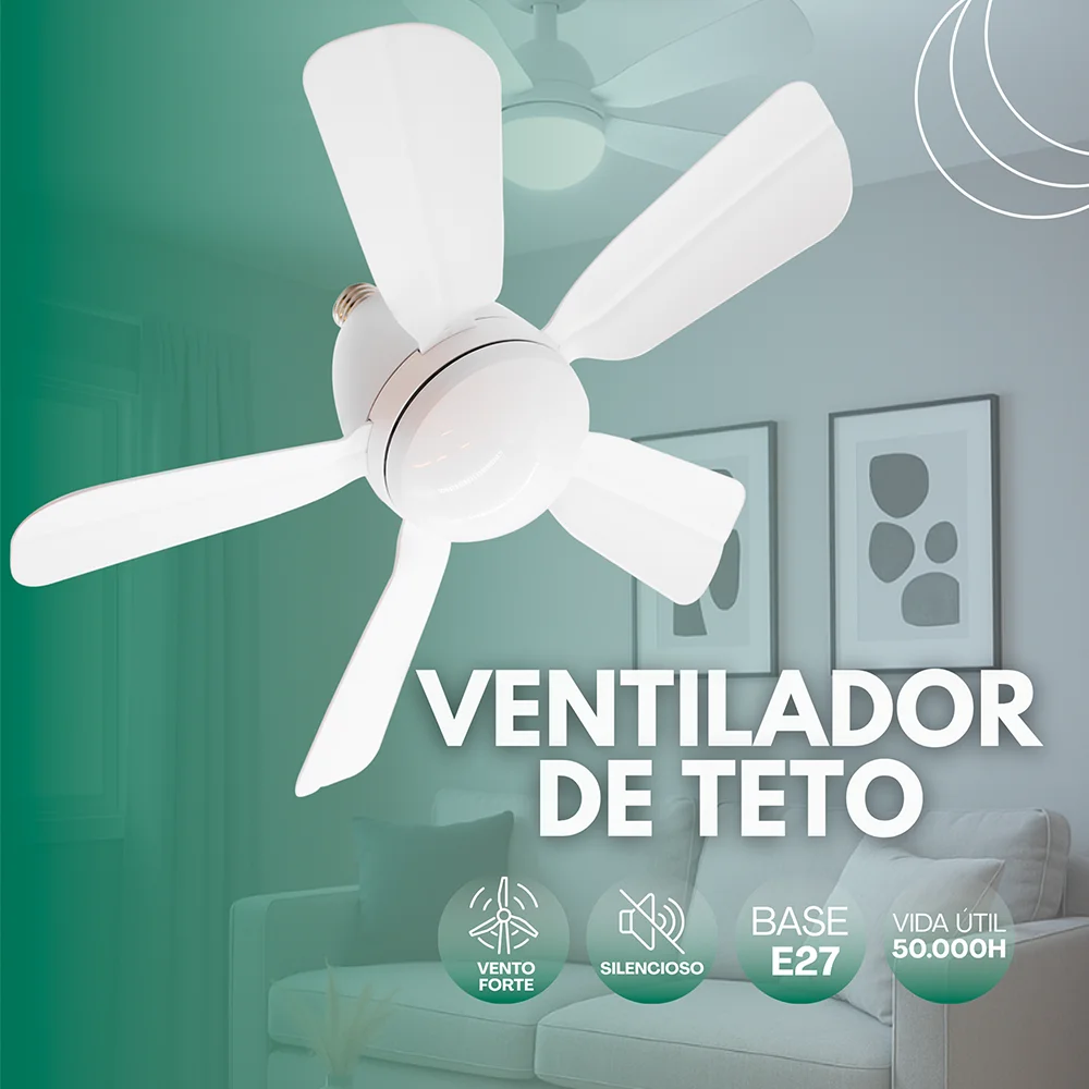 Ventilador de teto com tecnologia integrada que combina circulação de ar eficiente com iluminação LED. O modelo VT02 funciona com lâmpada E27, oferecendo compatibilidade com diversos tipos de iluminação. Bivolt automático, adapta-se a qualquer voltagem sem necessidade de ajustes. Potência de 80W garante desempenho robusto para ambientes de médio a grande porte. Ideal para salas, quartos e espaços comerciais que demandam ventilação contínua e iluminação integrada. Instalação simples em tetos padrão.