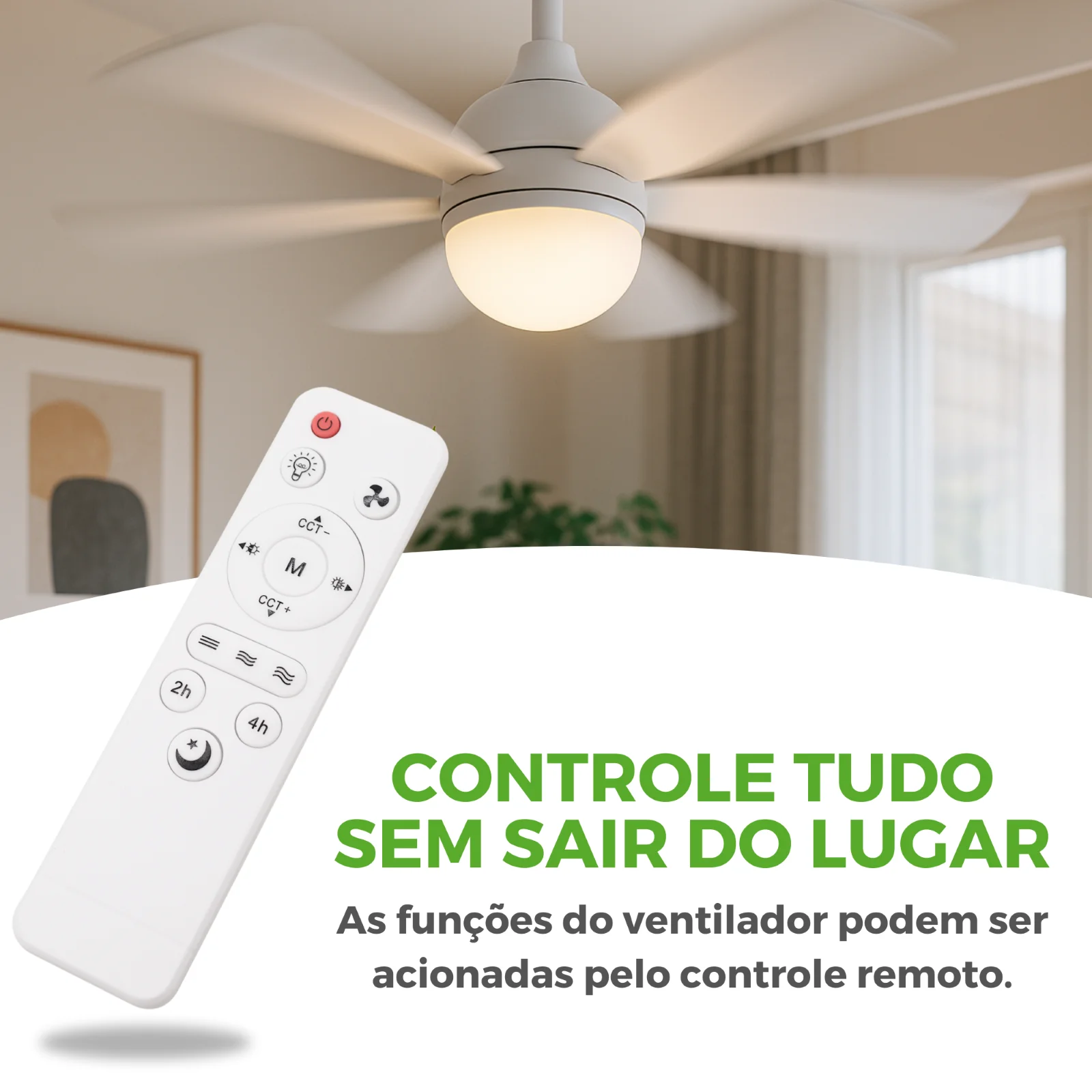 O Ventilador de Teto VT02 80w oferece conforto e praticidade ao refrescar e iluminar o seu ambiente. Com design moderno, é ideal para quem busca um espaço mais bonito e acolhedor.