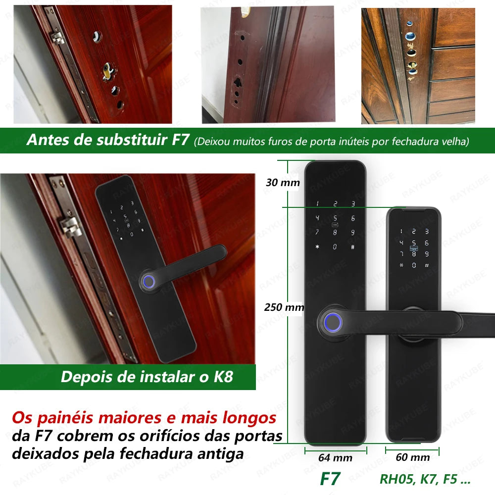 F7 is a new fingerprint door lock with Longer and Larger Handle Panels, which can cover the door holes left by the old lock. Also, The connecting rod screw on the back of lock is adjustable , which compares with the traditional electronic lock with fixed screw , F7 is more convenient to install and no punching.