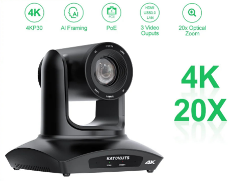 4K 20X PTZ Camera USB3.0 HDMI LAN POE Conference Camera For Church Live Streaming AI Framing Outdoor Video Camera