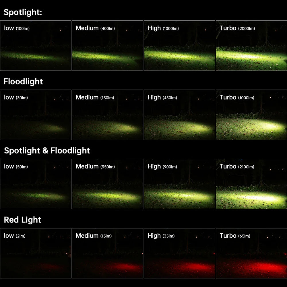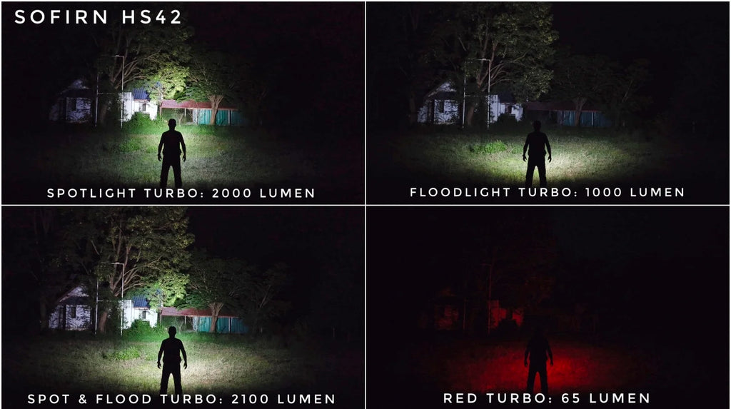 1. Six High-Performance LEDs: At the heart of the Sofirn HS42 lies its six LEDs. Its light sources including Spotlight, Floodlight and red light mode which providing excellent visibility in various conditions.