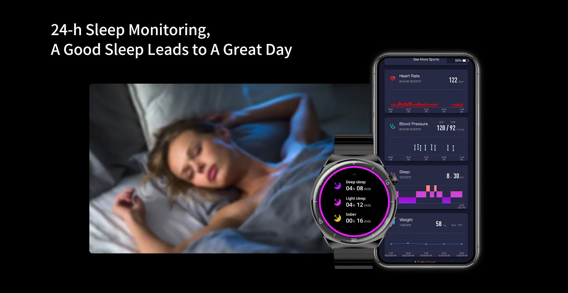 Metrics measured: Heart Rate Monitor,Women's Health Monitoring,Other,Blood Oxygen Monitor,Sleep Monitor,Blood Pressure Monitor,Stress Monitor