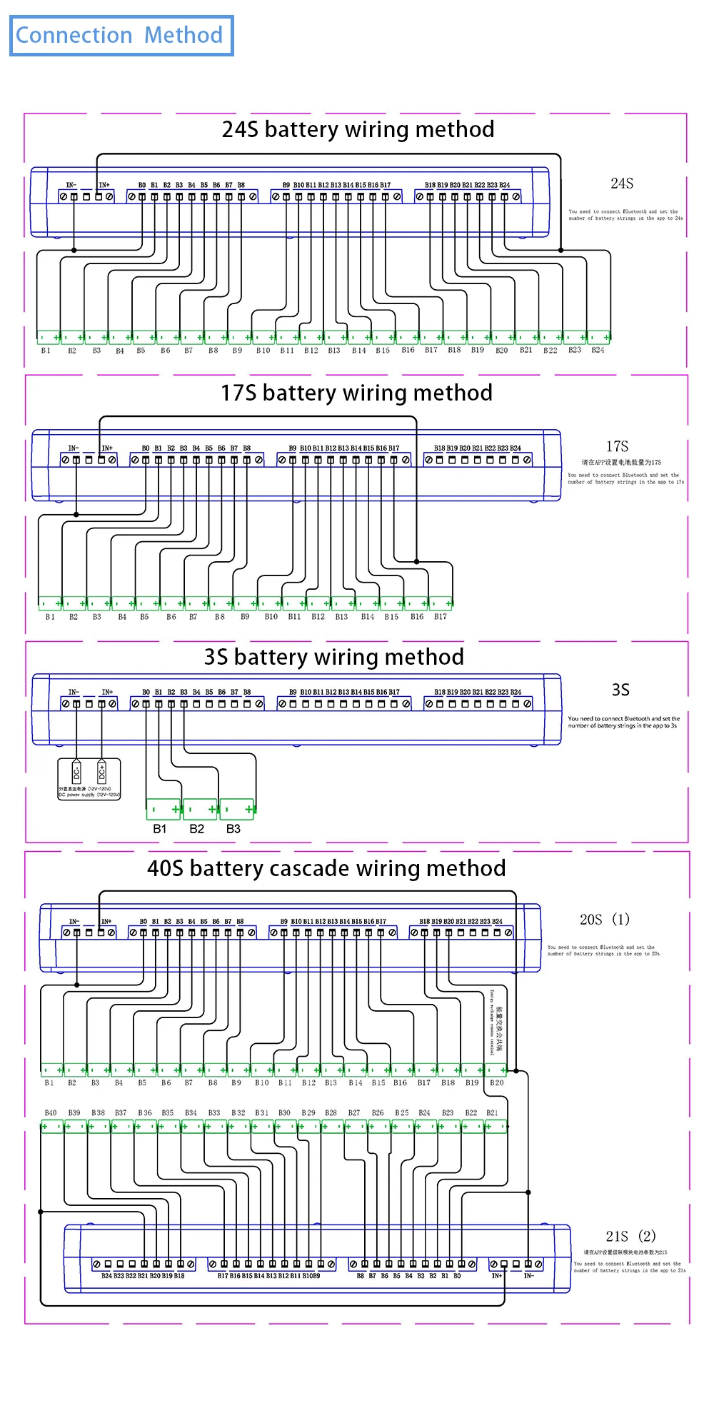 It supports the cascade use of equalizer. If you need to use equalizer on your car, please operate according to the wiring diagram. We have taken the wiring diagram example of 24s cascading 36s, which theoretically supports infinite cascading......