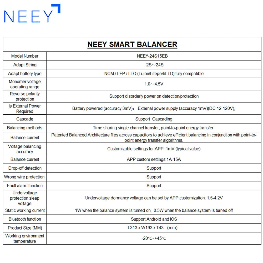 The balancing accuracy of 1MV makes this product stand out amongst others in the market. The board supports a range of voltages from 12V to 120V a. With NEEY-24S15EB, you can be assured of the safety and efficiency of your battery.