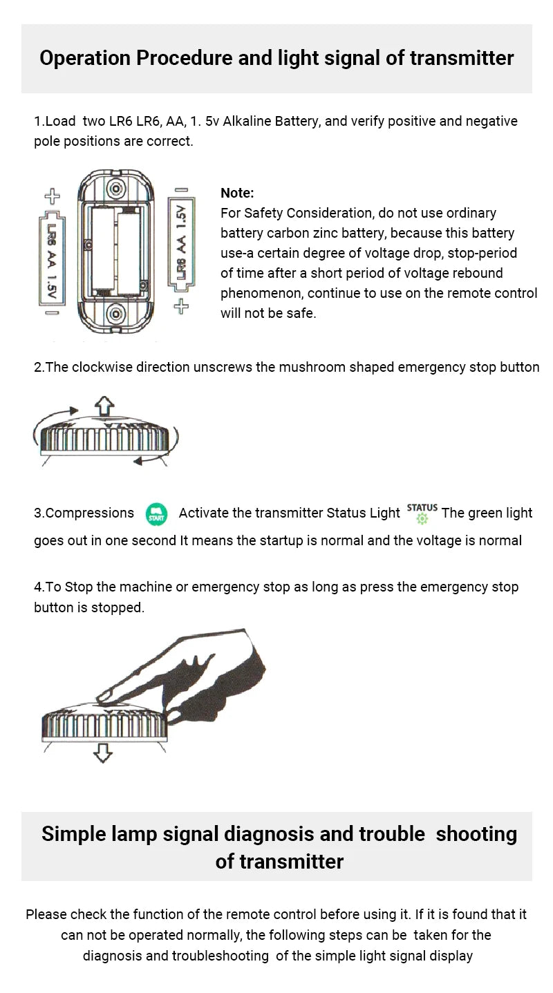 Controle remoto sem fio HENJEL H108 é a solução profissional para operações de guindaste industrial em aeronaves, desenvolvido com tecnologia robusta para ambientes de trabalho críticos. Seu design compacto integra 8 teclas de comando intuitivas com velocidade única, proporcionando controle preciso e seguro nas operações de elevação e movimentação de cargas pesadas. Com alcance de até 100 metros em frequência 433MHz, o H108 garante comunicação confiável mesmo em áreas extensas de trabalho. A alimentação por duas baterias AA (3V DC) oferece praticidade e autonomia operacional, enquanto a faixa de temperatura de operação entre -10°C e +75°C assegura desempenho consistente em condições climáticas variadas. Especificações técnicas de alta qualidade tornam este controle remoto ideal para aplicações industriais que exigem durabilidade, precisão e conformidade com padrões de segurança. Modelo HENJEL H108 é a escolha confiável para profissionais que não abrem mão de qualidade e performance em operações críticas.