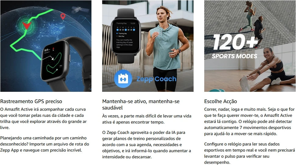 O Smartwatch Amazfit Active 42mm combina leveza e desempenho em um dispositivo versátil para seu dia a dia. Com bateria que dura até 14 dias, você acompanha suas atividades sem interrupções constantes de recarga. A tela de 1,75" oferece visualização clara, enquanto o GPS integrado garante rastreamento preciso de suas rotas. Monitore passos, calorias, sono e atividades físicas em tempo real. Receba notificações de chamadas e mensagens diretamente no pulso. Compatível com Android e iOS, conecta-se via Bluetooth 5.2 para sincronização estável. O design superleve torna o uso confortável durante todo o dia, sem causar incômodo no pulso. A bateria de 220-300mAh foi otimizada para oferecer autonomia excepcional, permitindo que você se concentre em seus objetivos de saúde e fitness. Suporta múltiplos idiomas, incluindo português, facilitando a navegação e personalização conforme suas preferências. Desenvolvido pela Amazfit, marca reconhecida em tecnologia wearable, este smartwatch é a escolha ideal para adultos que desejam monitorar sua saúde, acompanhar treinos e manter-se conectado com praticidade e confiabilidade.
