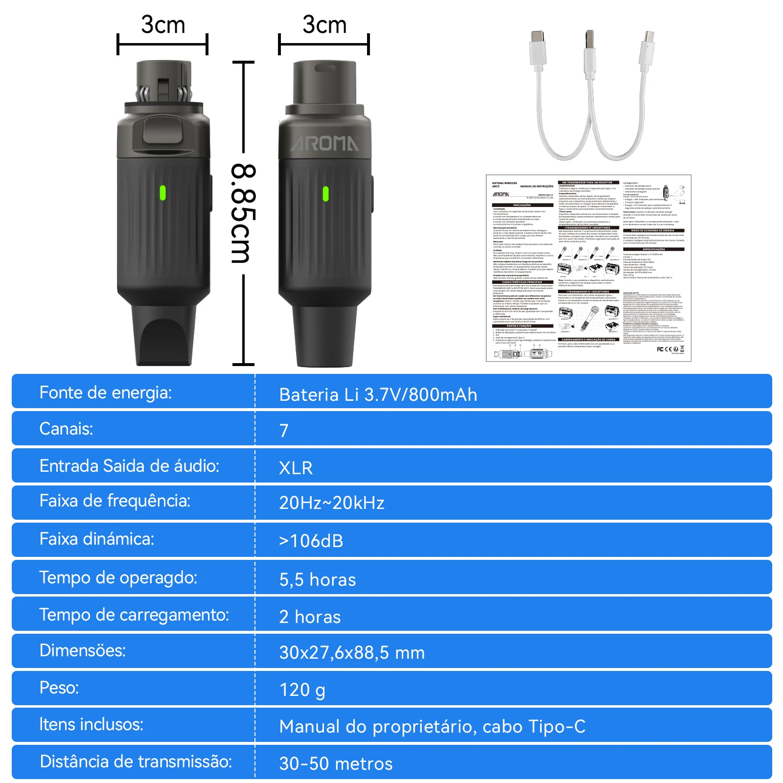 O Sistema AROMA ARC2 oferece transmissão sem fio profissional com conectores XLR, ideal para microfones dinâmicos e condensadores. Compatível com sistemas de PA, mesas de mixagem e câmeras DSLR, garante sinal estável e confiável em apresentações ao vivo, estúdios e produções audiovisuais. O kit completo inclui transmissor e receptor, proporcionando liberdade de movimento sem comprometer a qualidade de áudio. Solução versátil para músicos, produtores e profissionais de vídeo que exigem performance de alta fidelidade.