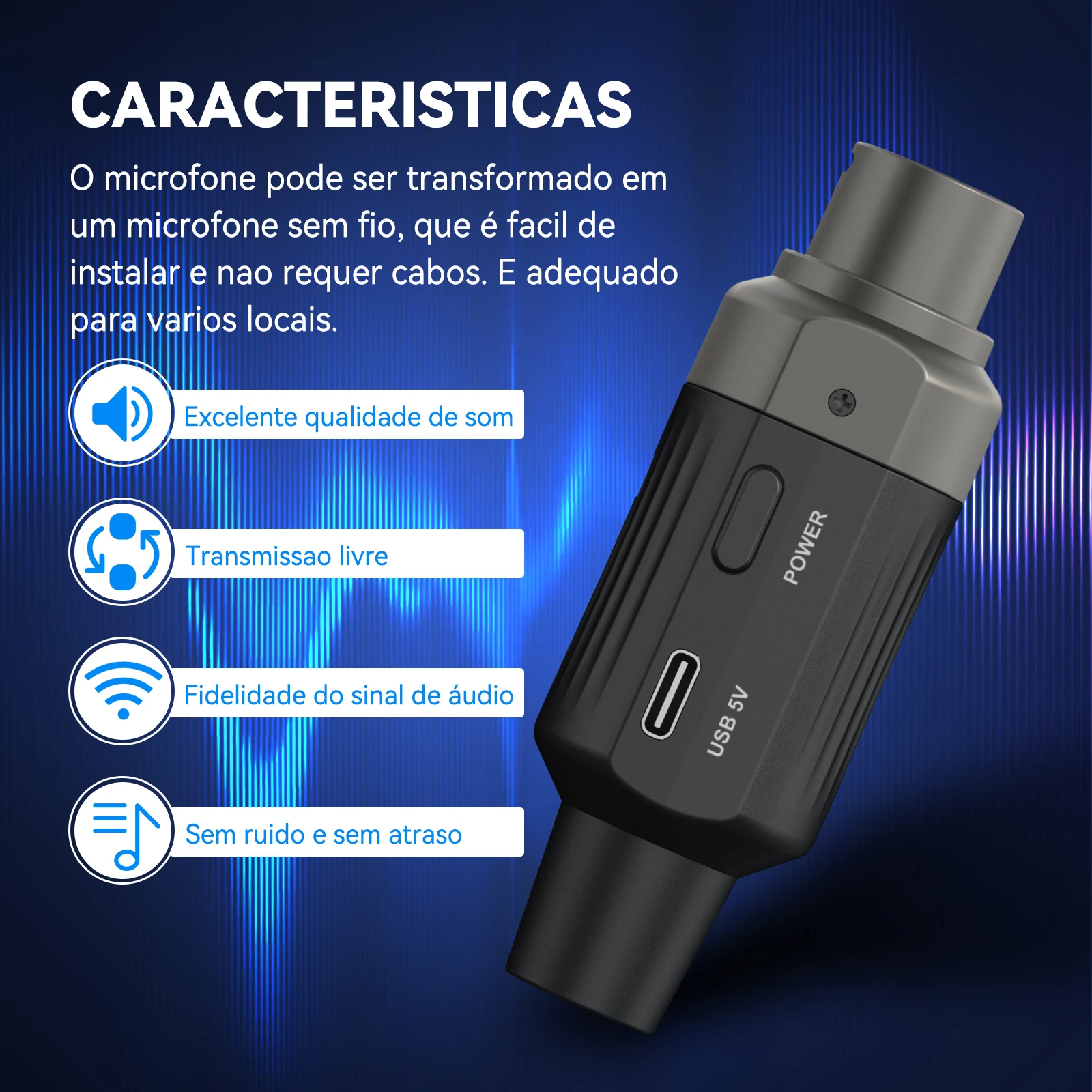 Som de nível profissional: O adaptador XLR sem fio oferece resolução de áudio de 24 bits, frequência de amostragem de 192K, faixa dinâmica de 106 dB e latência inferior a 5 ms para áudio nítido e de alta fidelidade. Ele garante que não haja ruídos ou atrasos indesejados, proporcionando um som profissional para apresentações, gravações e produções de vídeo