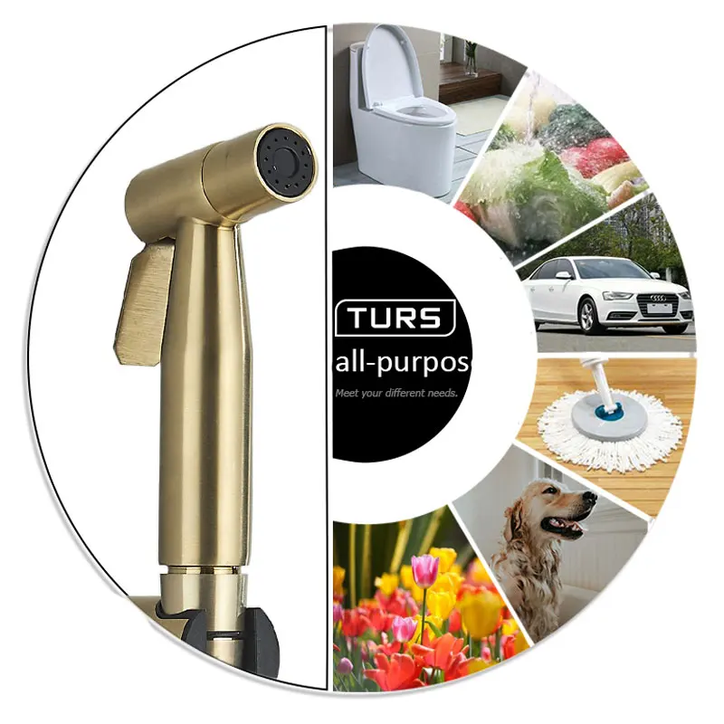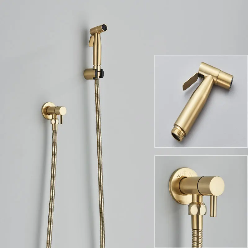 Kit de ducha manual em ouro escovado, pulverizador para bidê, torneira para bidê em aço inoxidável, válvula Shattaf, conjunto de jatos, chuveiro higiênico