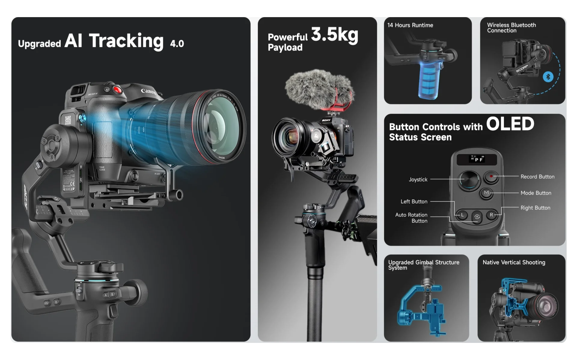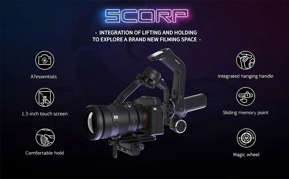 O Feiyu SCORP-C2 é um estabilizador gimbal profissional de 3 eixos desenvolvido para câmeras DSLR Sony e Canon. Com tecnologia de ponta da FeiyuTech, oferece estabilização precisa e suave para vídeos e fotografia em movimento. Ideal para cineastas, produtores de conteúdo e fotógrafos que buscam qualidade cinematográfica. Seu design robusto e controles intuitivos garantem captura de imagens nítidas em qualquer situação, desde produções profissionais até projetos criativos.
