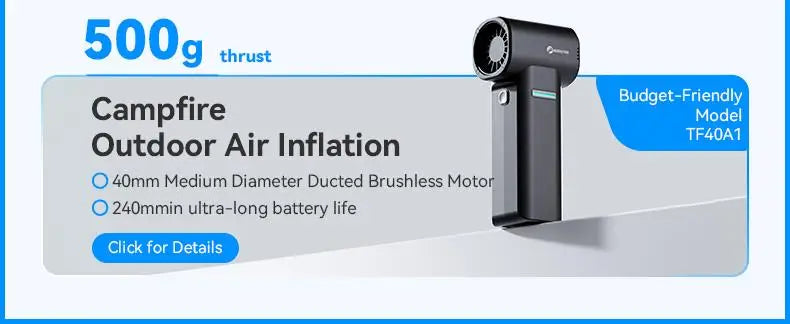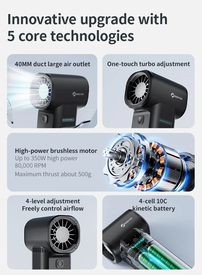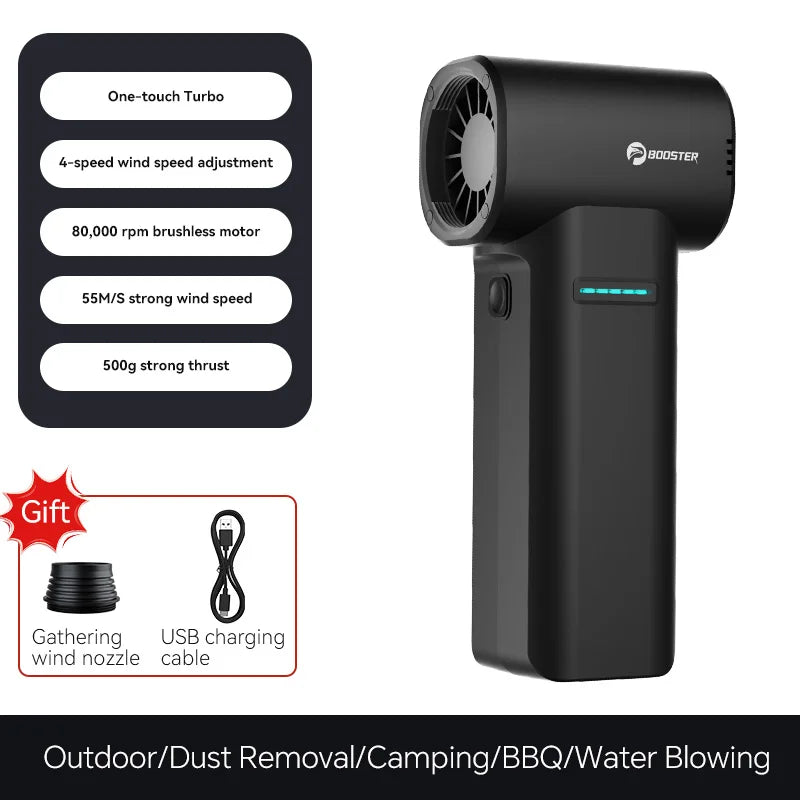 Ventilador Turbo Booster TF40 sem escovas representa a solução ideal para quem busca potência e portabilidade em um único equipamento. Com apenas 500g, este soprador de ar de alta performance é alimentado por bateria incluída, garantindo mobilidade total sem comprometer a eficiência. Seu motor sem escovas proporciona fluxo de ar intenso e consistente, perfeito para remoção rápida de água em superfícies, secagem de áreas molhadas e limpeza profunda em diversos ambientes. Certificado CE, o modelo TF40 combina durabilidade com praticidade, tornando-se companheiro indispensável para camping, churrasco e atividades ao ar livre. O material composto resistente assegura confiabilidade em diferentes condições de uso, desde ambientes úmidos até exposição a variações climáticas. Sua tecnologia sem escovas reduz manutenção e prolonga a vida útil do equipamento. Versátil e eficiente, este ventilador atende tanto necessidades domésticas quanto profissionais, oferecendo desempenho superior em um formato compacto e fácil de transportar.