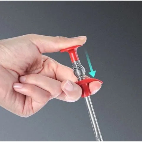 Equipped with a spring control that extends a retractable grab at the tip and holds whatever is clogging the drain firmly for easy removal.