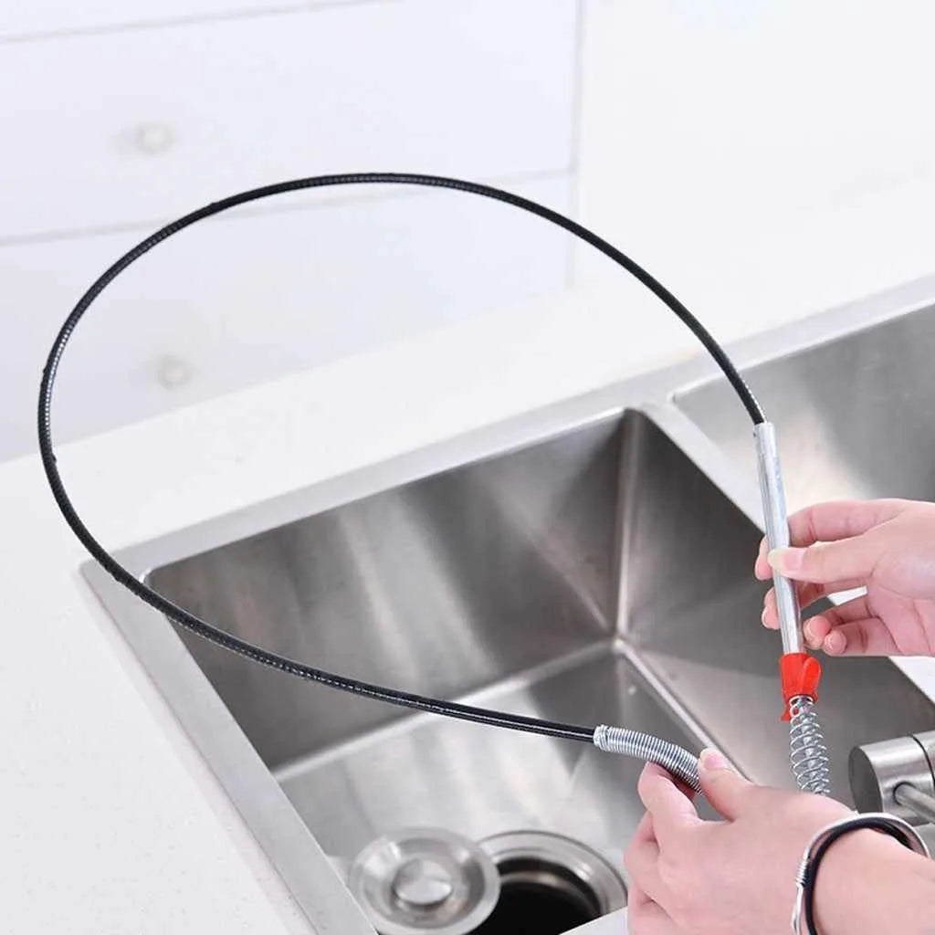 The grapple sink and drain plunger has a sturdy spring-loaded handle, long, thin and flexible enough to reach the deepest drains, narrower and curved to clear any obstructions and accumulated debris.