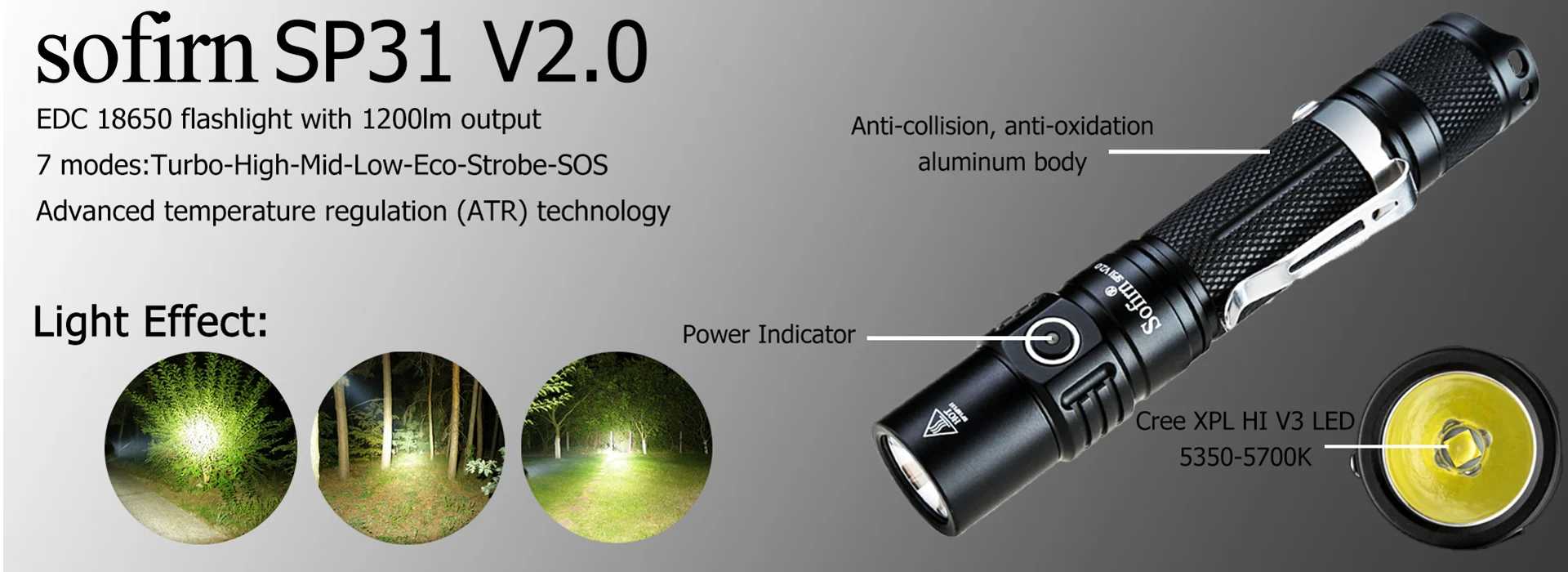 Sofirn SP31 V2.0 Lanterna Tática LED Potente 18650 XPL HI 1200lm Luz de Tocha com Interruptor Duplo Indicador de Energia ATR